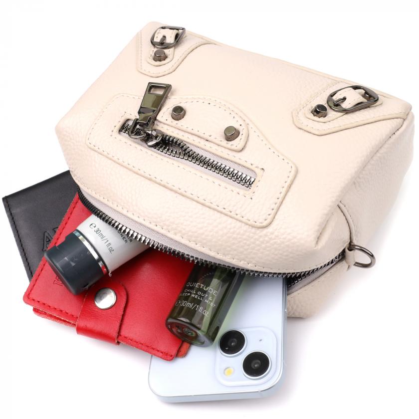 Компактная женская сумка с трендовым декором из натуральной кожи Vintage 22923 Белый