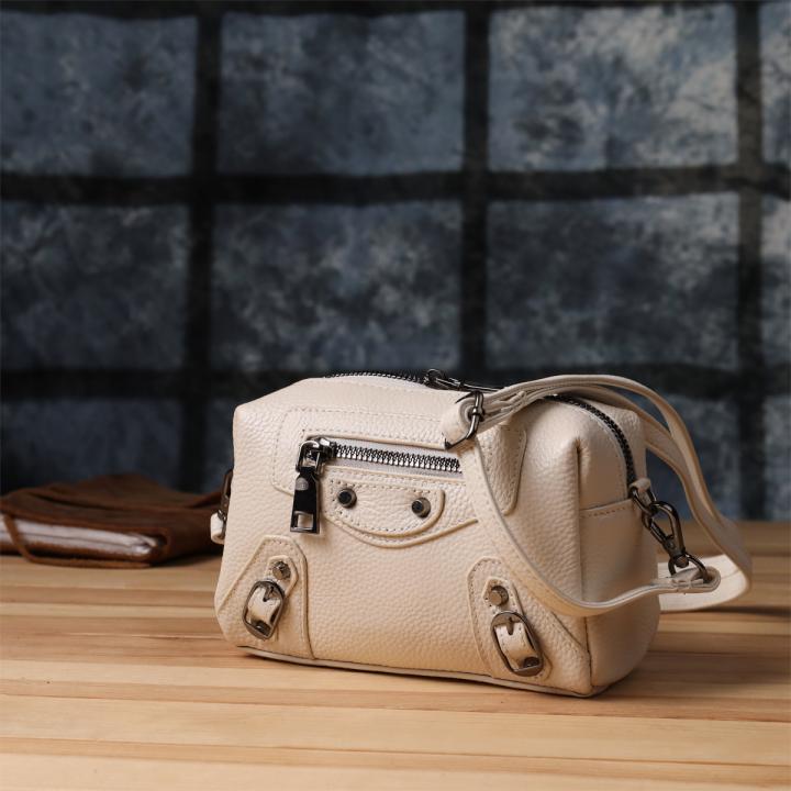Идеальный выбор для тех, кто ценит смелые акценты и практичный формат — белая кожаная сумка с декоративной отделкой станет выразительной деталью в любом образе, от casual до городского шика.
