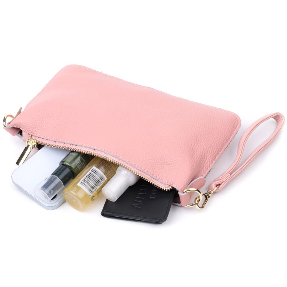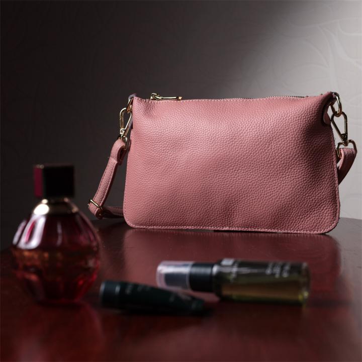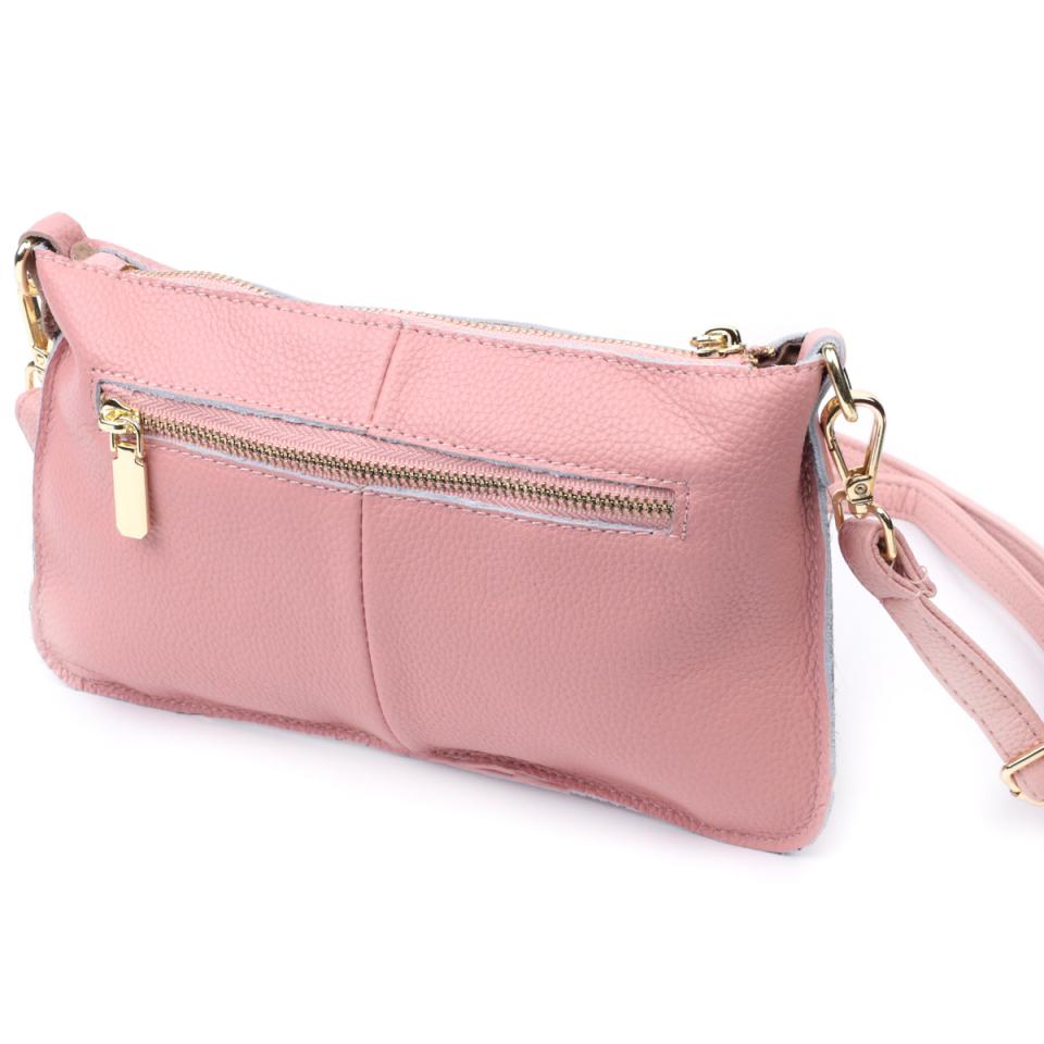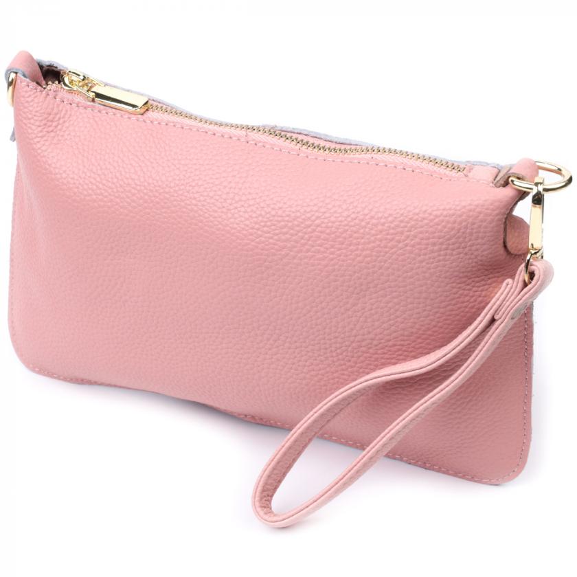 Красивая женская сумка-клатч с двумя ремнями из натуральной кожи Vintage 22644 Розовая
