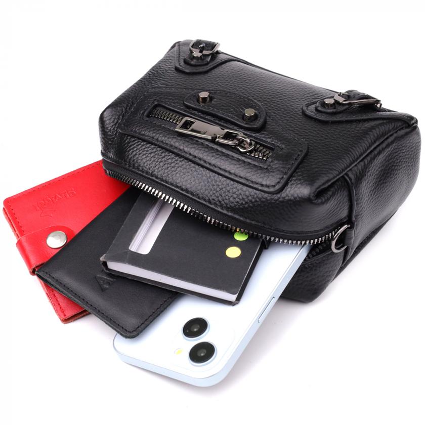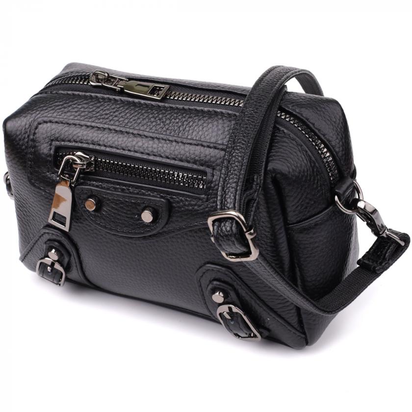 Модная женская сумка из натуральной кожи с актуальным декором Vintage 22922 Черный