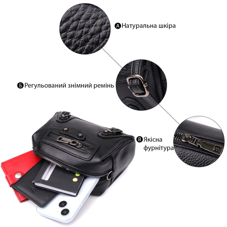 Опис: Модная женская сумка из натуральной кожи с актуальным декором Vintage 22922 Черный