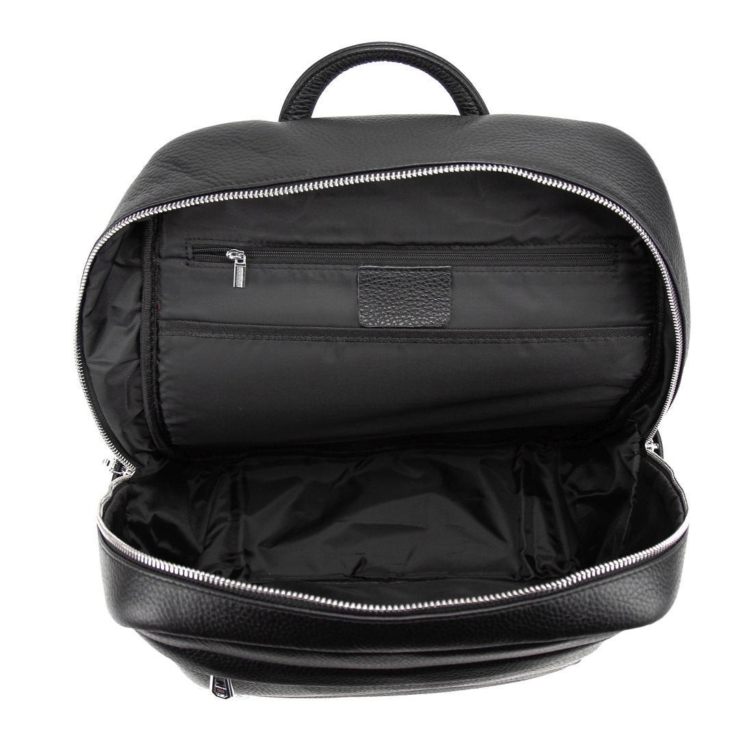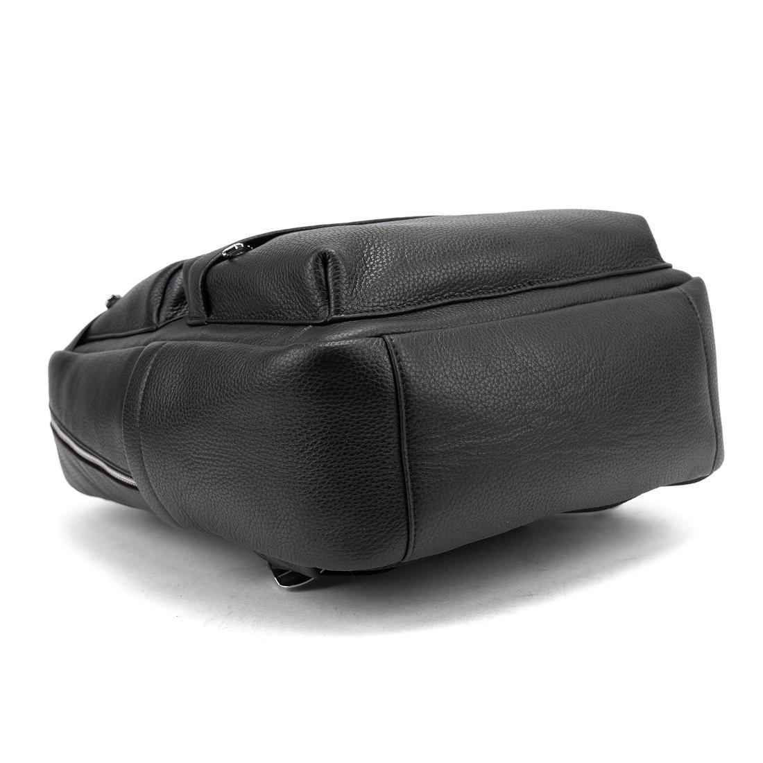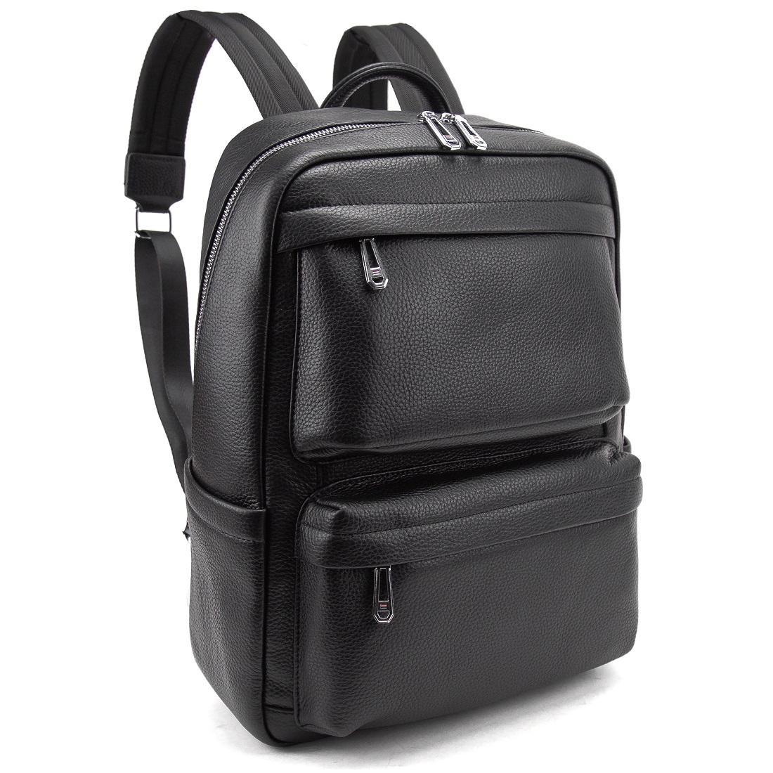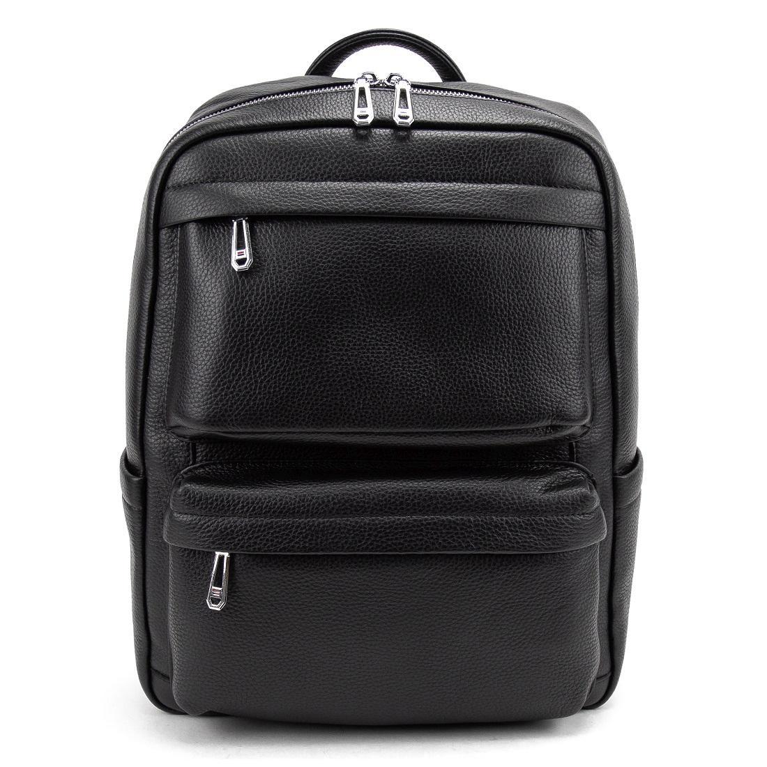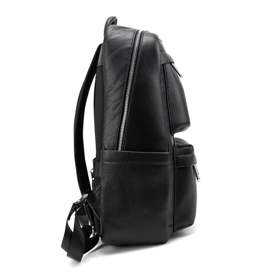 Мужской кожаный рюкзак черный Tiding Bag A25F-210727A изготовлен из натуральной кожи черного цвета, имеющей зернистую матовую текстуру.