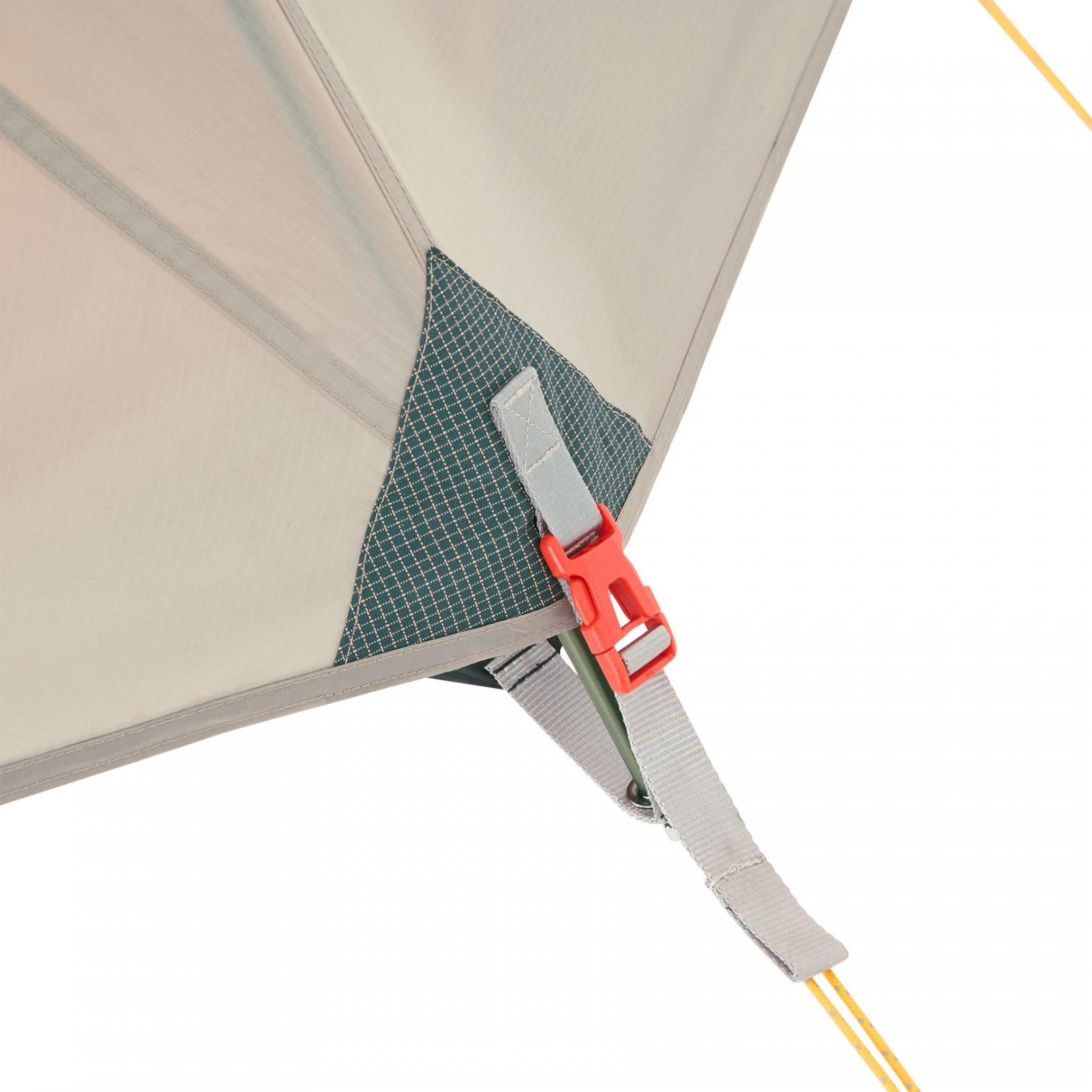 - Подвійні петлі нижнього борта тенту забезпечують необхідну варіативність фіксації, що вкрай важливо для якісної натяжки тенту при установці намету на кам'янистому ґрунті, коли кілочки можна зафіксувати тільки в певних точках на місцевості де немає каменів.