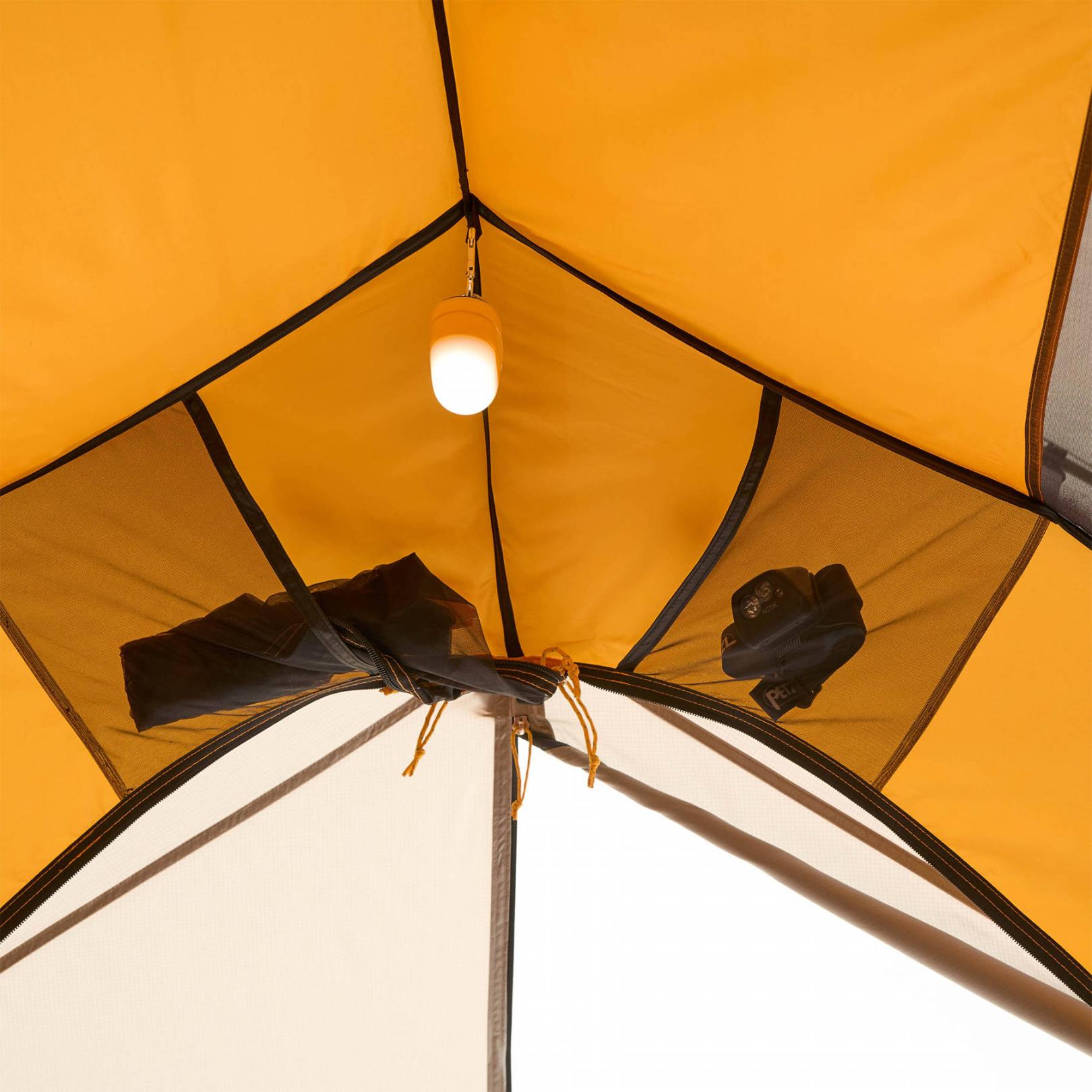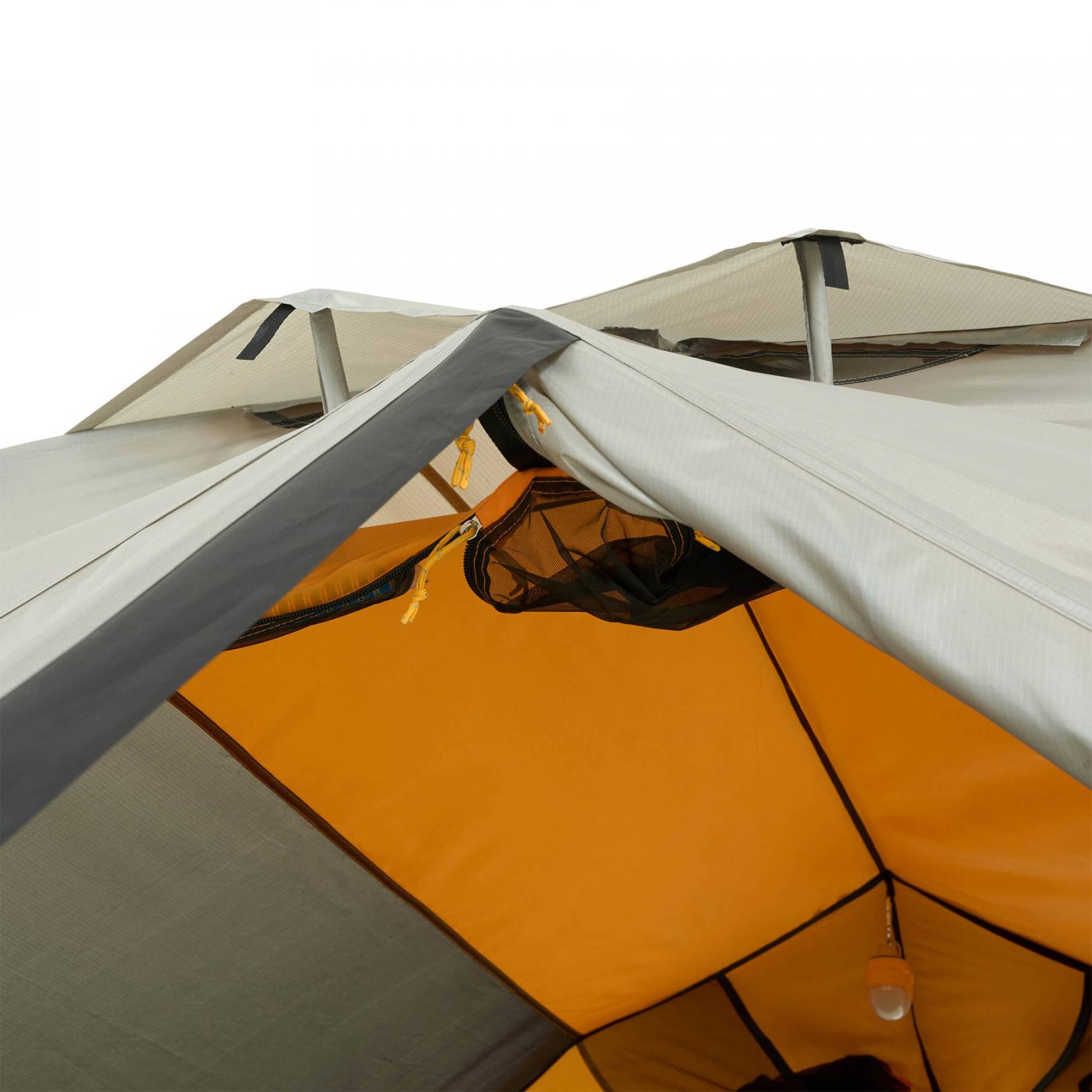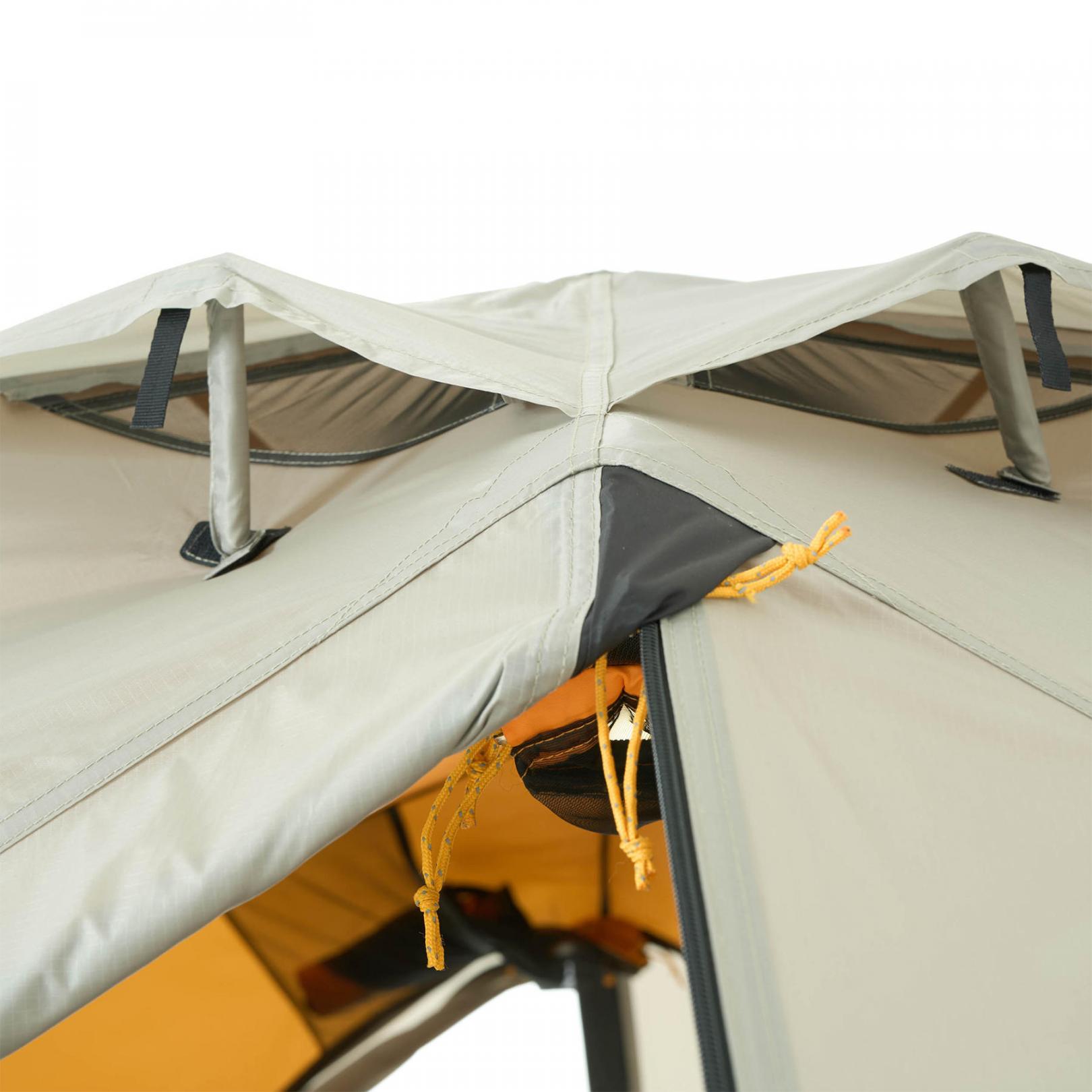- Намет має 4 великих вентиляційних клапана APEX, розташованих у верхній частині тамбурів. Таким чином забезпечується правильна вентиляція внутрішнього намету і зовнішнього тенту, запобігається утворення конденсату і регулюється внутрішня температура. Клапана фіксуються жорстким фіксатором на застібці Velcro і не створюють небажаного шуму навіть під поривчастим вітром. Частина внутрішнього намету виконана з сітки NoSeeUm, що також поліпшує провітрювання.
