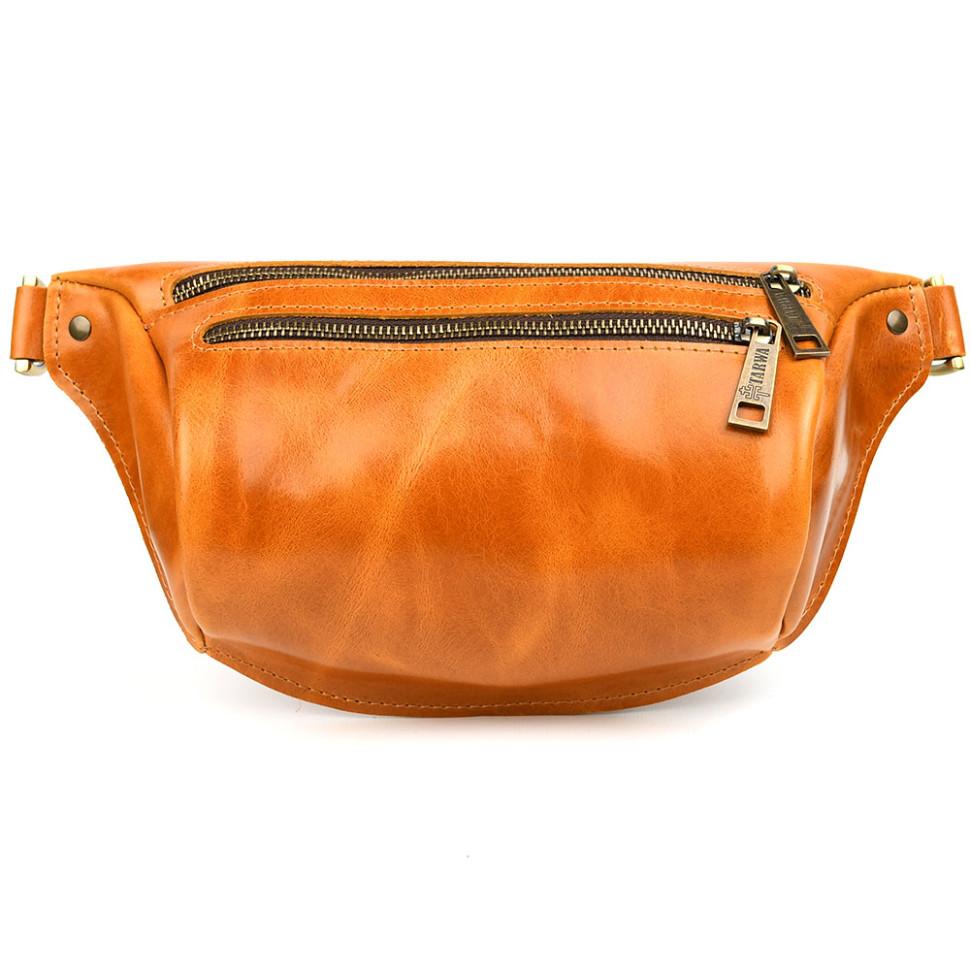 Напоясная сумка бананка в размере М TARWA GY-3105-2lx 2 отделения рыжая. Две молнии спереди: одно основное отделение и передний карман на молнии. Внутри тканевая подкладка.