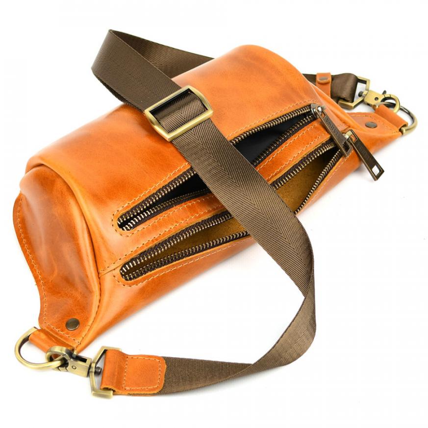 Напоясная сумка бананка в размере М TARWA GY-3105-3lx 3 отделения рыжая. Две молнии спереди: одно основное отделение и передний карман на молнии, карман на молнии на задней стороне. Внутри тканевая подкладка.