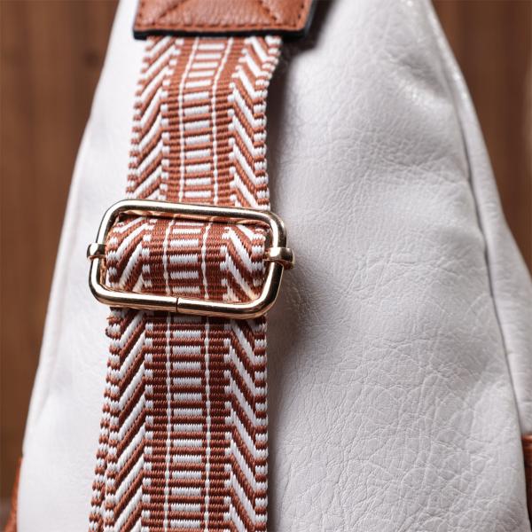 Небольшая женская сумка через плечо из экокожи с акцентом на текстильную лямку Vintage 22779 Белый