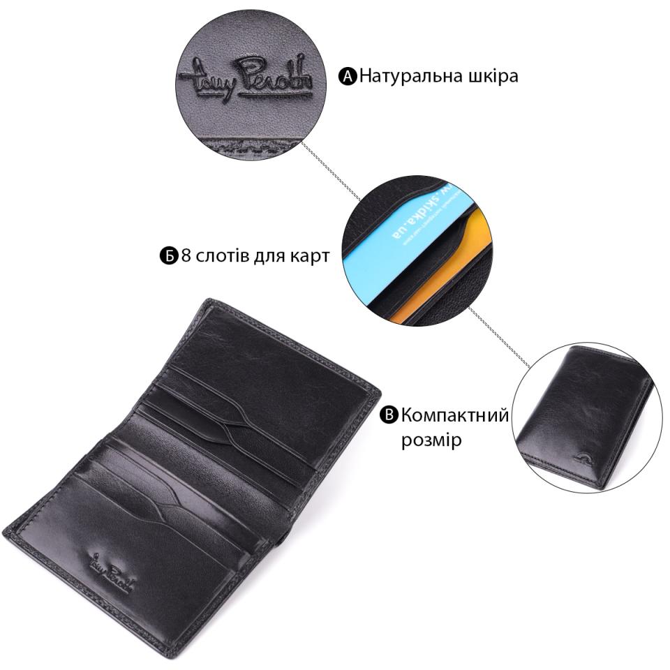 Опис: Небольшой бумажник для мужчин из глянцевой натуральной кожи Tony Perotti 20898_1 (3549 nero) Черный