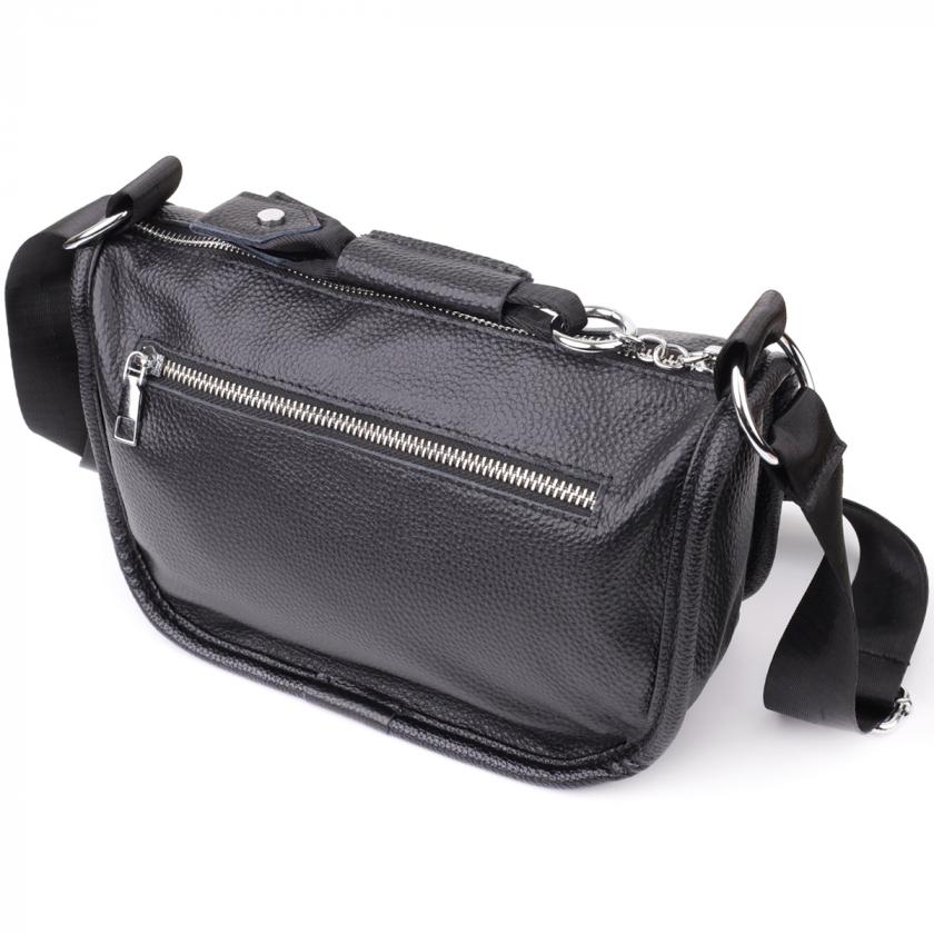 Женская кожаная сумка e в черном цвете выполнена из качественной зернистой кожи и имеет полукруглую аккуратную форму, подчеркивающую элегантность и современный стиль. Особый акцент модели — декоративный бегунок в виде стильного брелка, который добавляет индивидуальности и изысканности. Сумка закрывается на молнию, внутри одно основное отделение с двумя карманами на молнии и двумя открытыми карманами для мелочей, на тыльной стороне расположен внешний карман на молнии. Текстильный ремень не съемный и обеспечивает удобное ношение, а фурнитура под серебро гармонично дополняет общий образ. Эта сумка станет универсальным аксессуаром для повседневного использования и особых случаев, сочетая практичность, стиль и внимание к деталям.