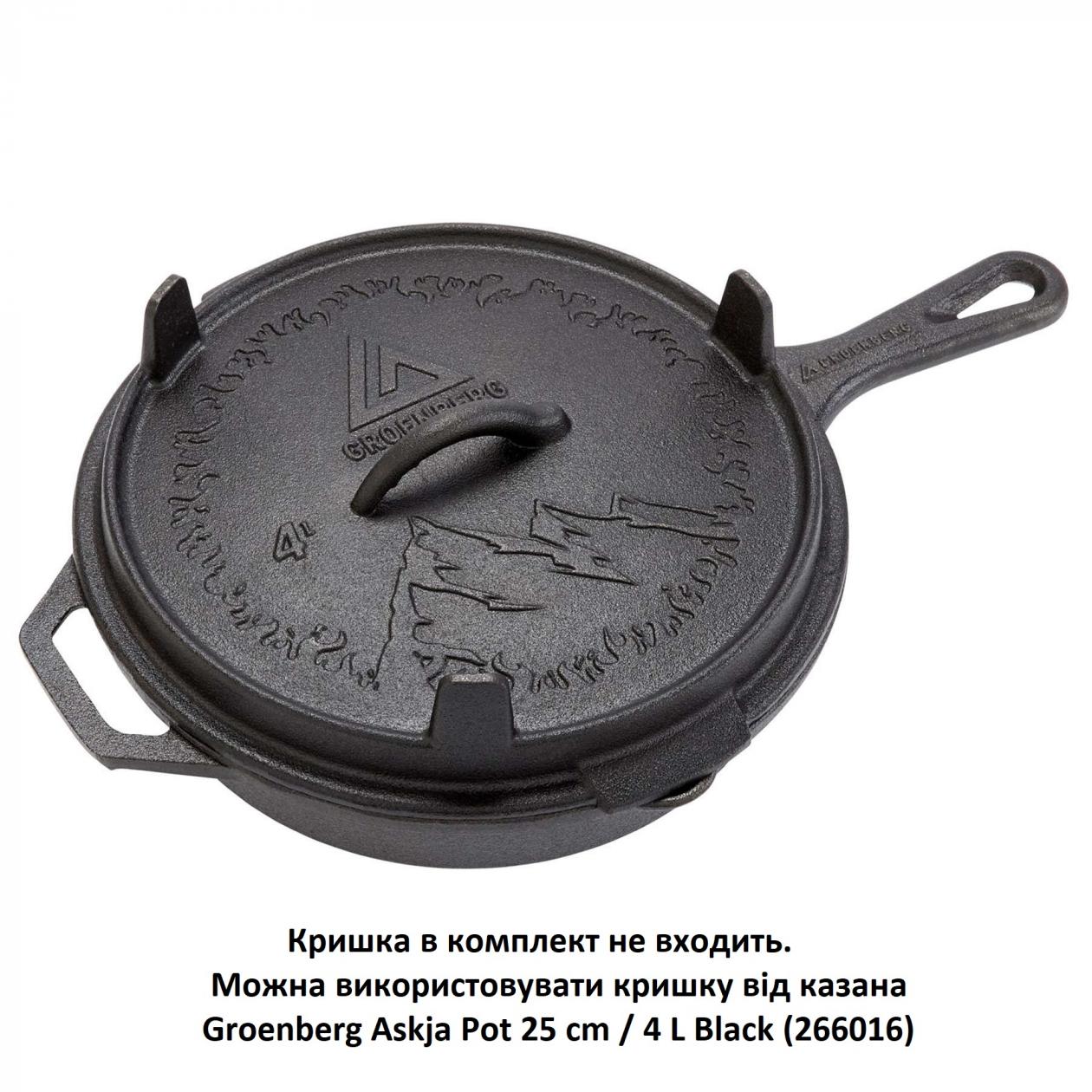 Зверніть увагу: кришка не входить у комплект, але ідеально підходить кришка від казана Groenberg Askja Pot 25 cm / 4 L Black (266016).