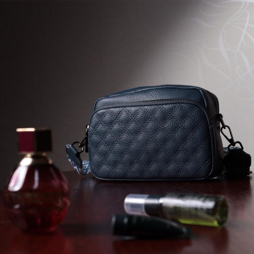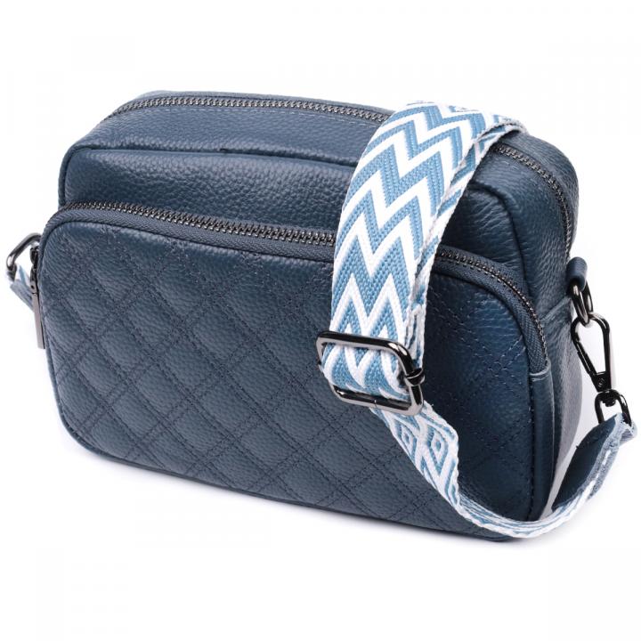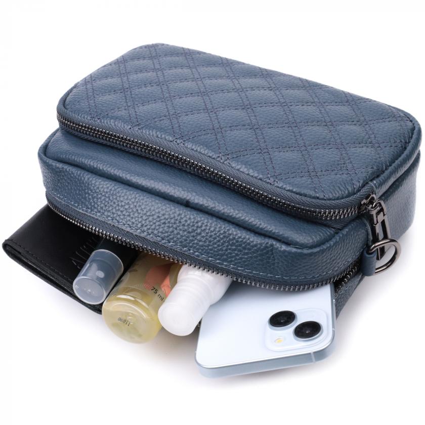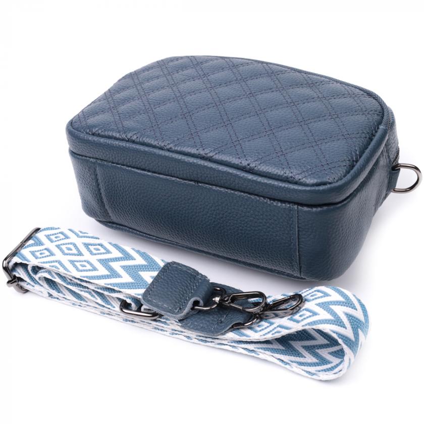 Стильная женская сумка прошитая ромбами на лицевой стороне из натуральной кожи Vintage 22636 Синяя