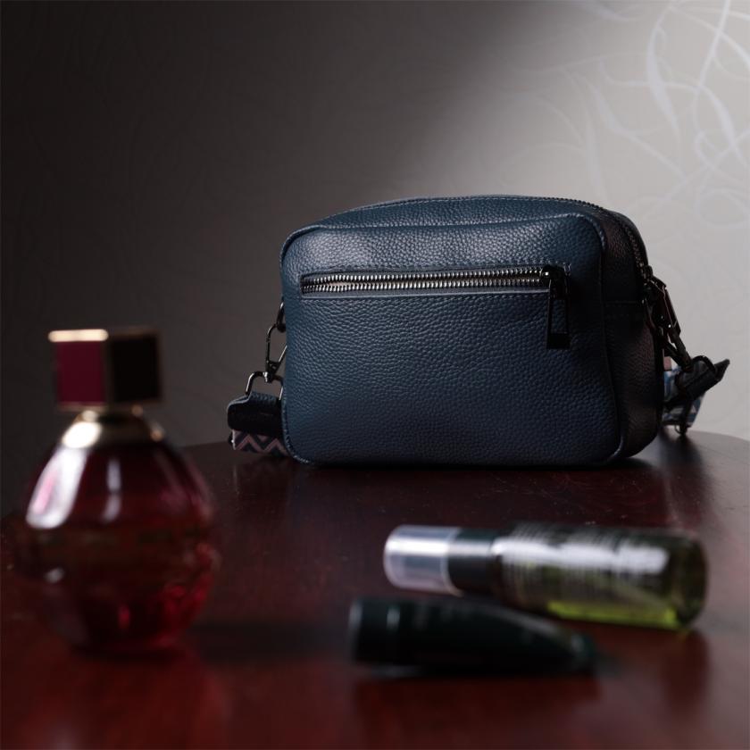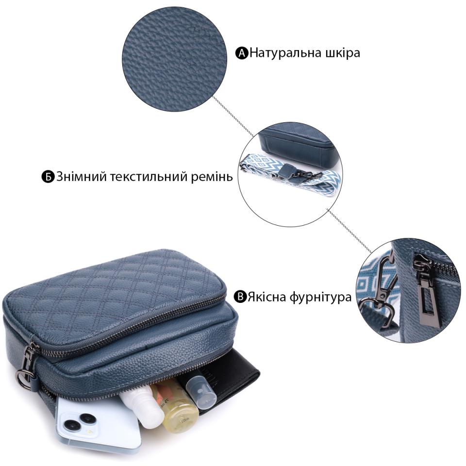 Опис: Стильная женская сумка прошитая ромбами на лицевой стороне из натуральной кожи Vintage 22636 Синяя