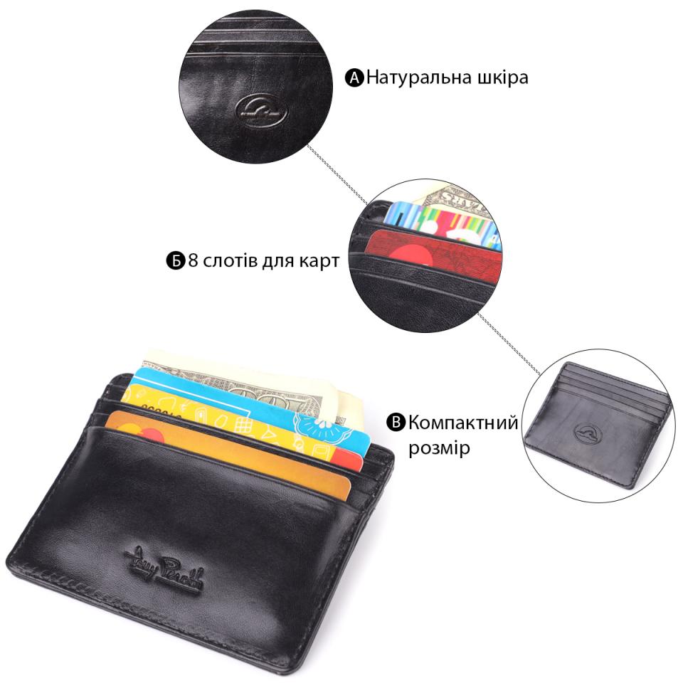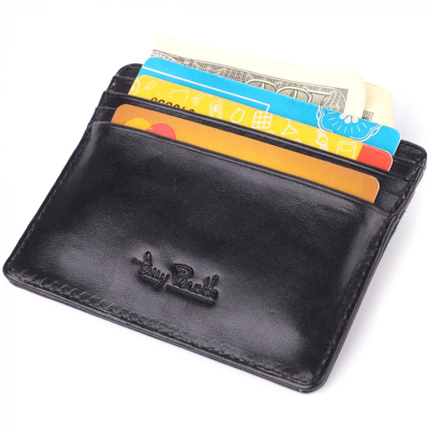 Стильный картхолдер из глянцевой натуральной кожи Tony Perotti 20894_1 (2236 nero) Черный