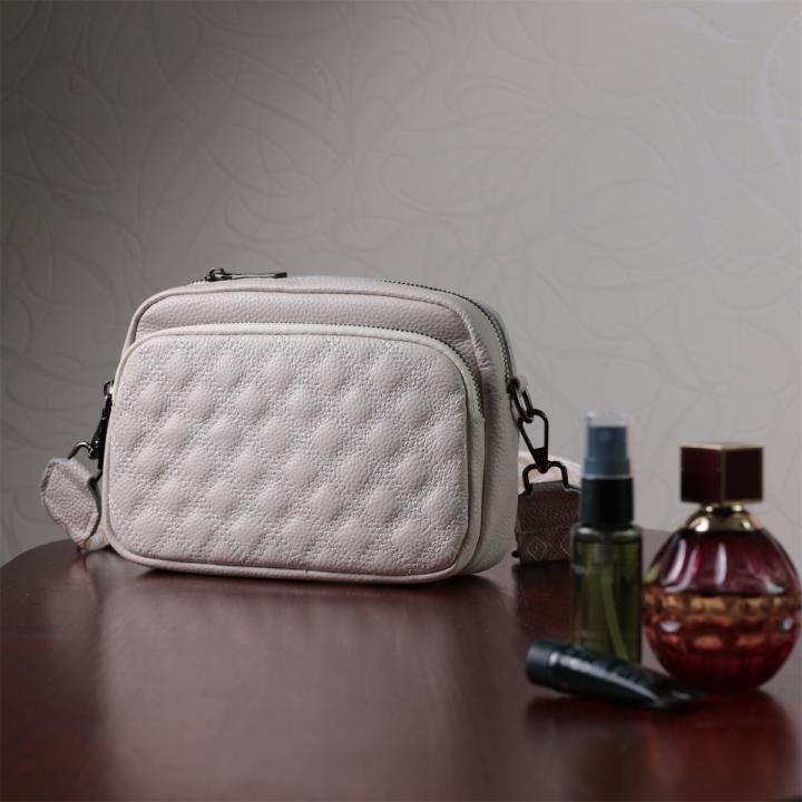 Сумка для женщин прошитая ромбами на лицевой стороне из натуральной кожи Vintage 22633 Белая