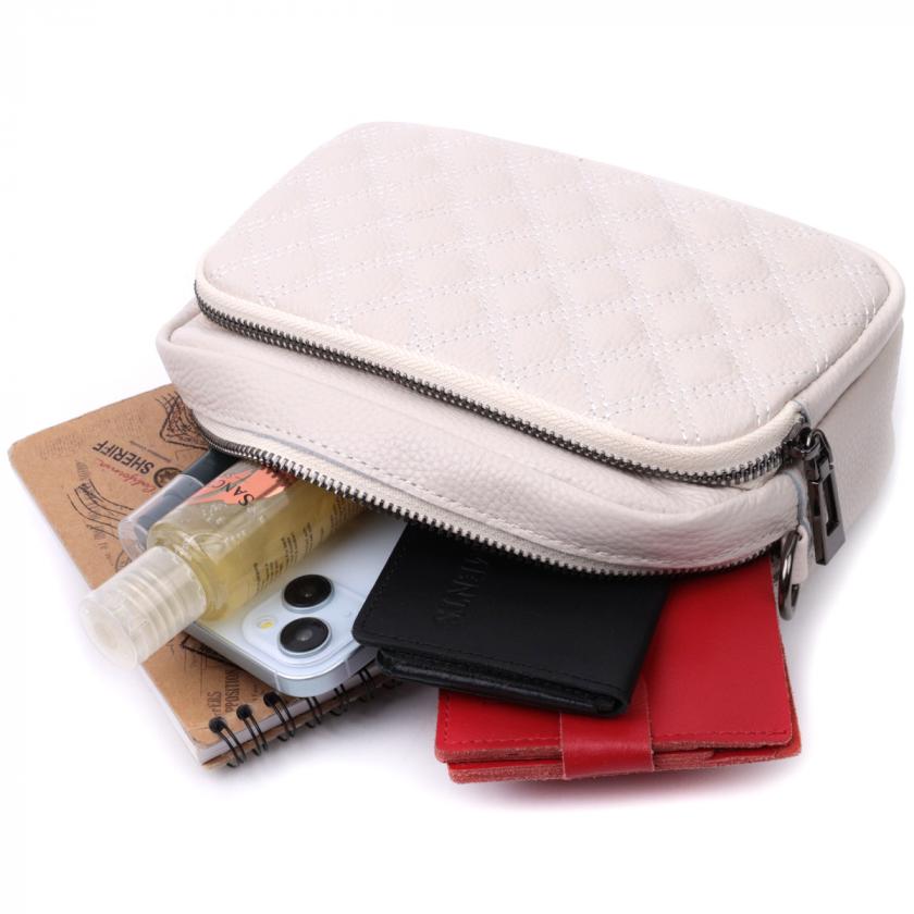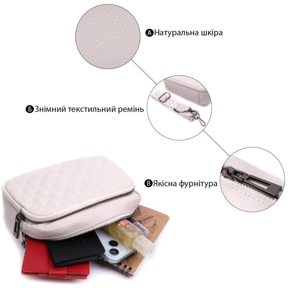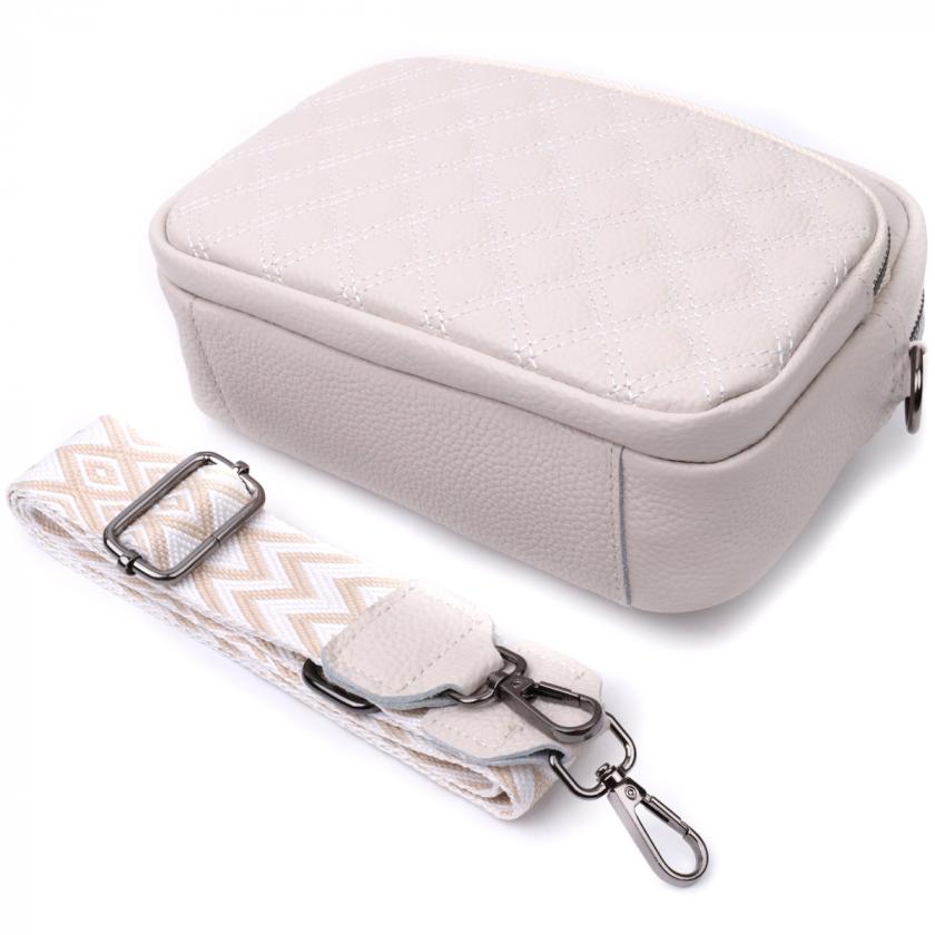 Опис: Сумка для женщин прошитая ромбами на лицевой стороне из натуральной кожи Vintage 22633 Белая