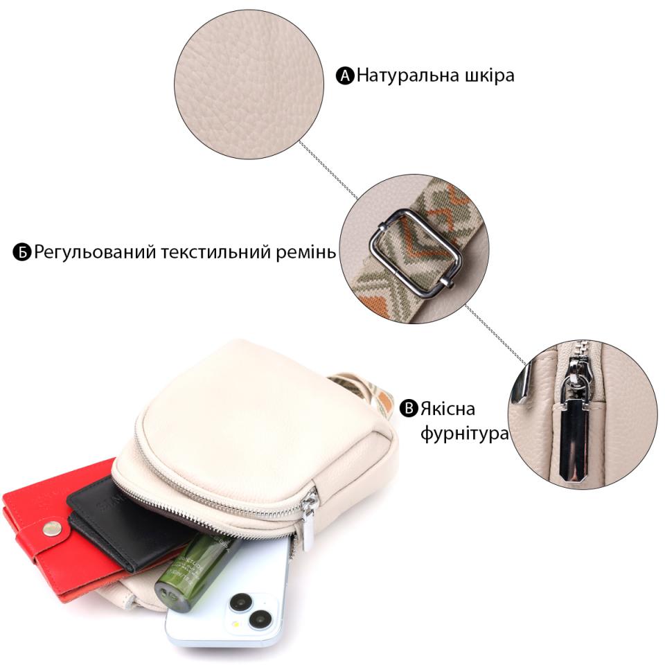 Опис: Сумка-слинг из натуральной кожи для женщин Vintage 22936 Белый