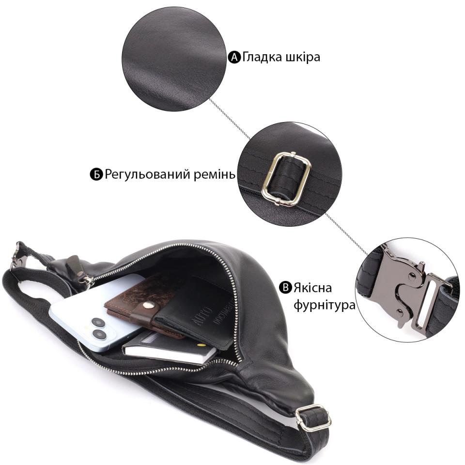 Опис: Удобная мужская бананка отменного качества из гладкой натуральной кожи Shvigel 23143 Черный