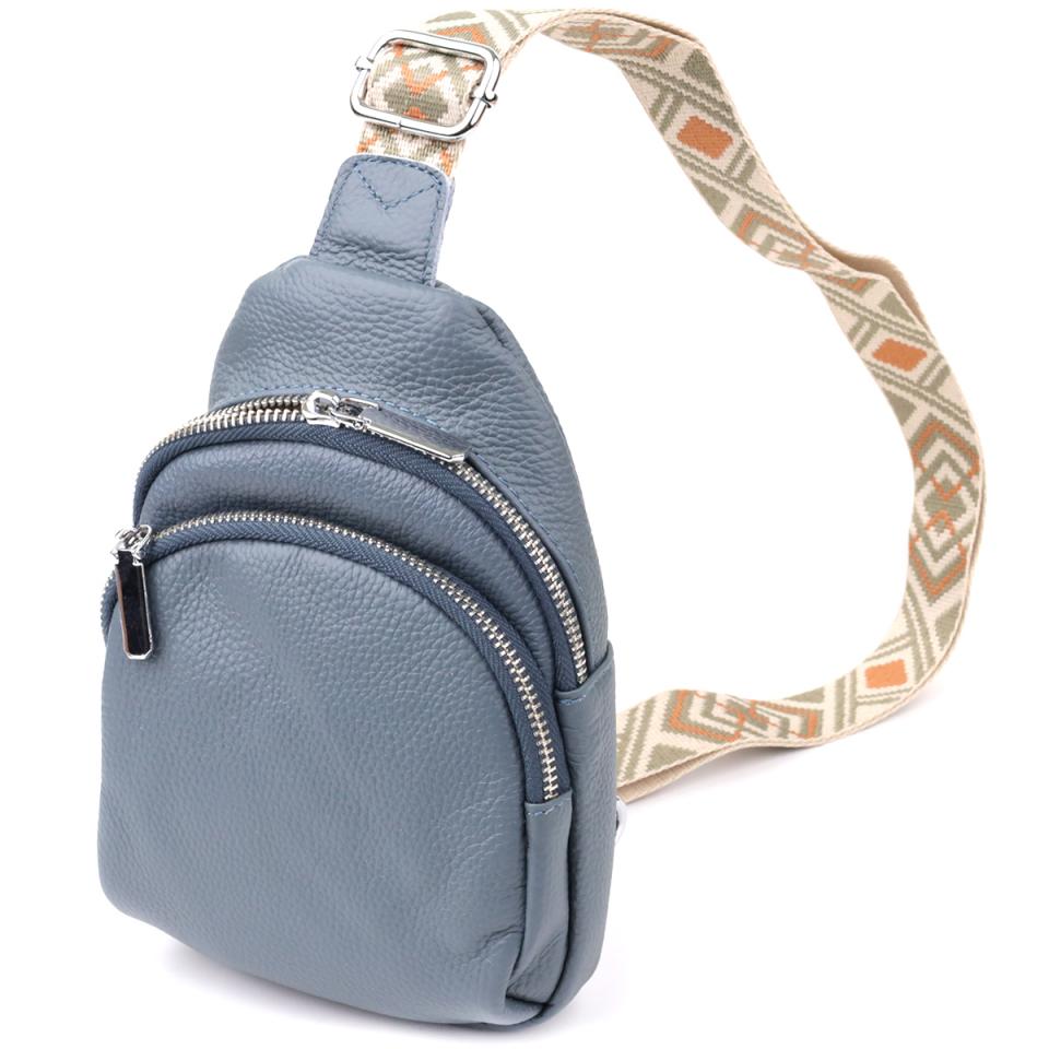 Универсальная женская сумка-слинг из натуральной кожи Vintage 22937 Синий