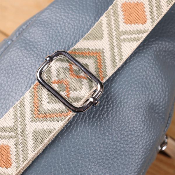 Особое внимание заслуживает регулируемый текстильный ремень с ярким стильным узором — он не только обеспечивает комфортную посадку на теле, но и становится выразительным элементом дизайна. Ремень несъёмный, но легко регулируется под ваш рост и способ ношения. Фурнитура выполнена в серебристом цвете, что придаёт аксессуару современный и сдержанный блеск, прекрасно сочетающийся с текстурой кожи и акцентами ремня.