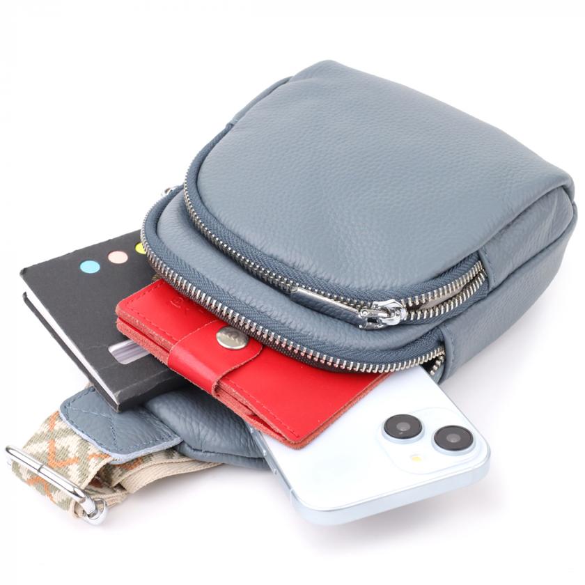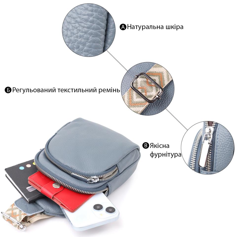 Опис: Универсальная женская сумка-слинг из натуральной кожи Vintage 22937 Синий