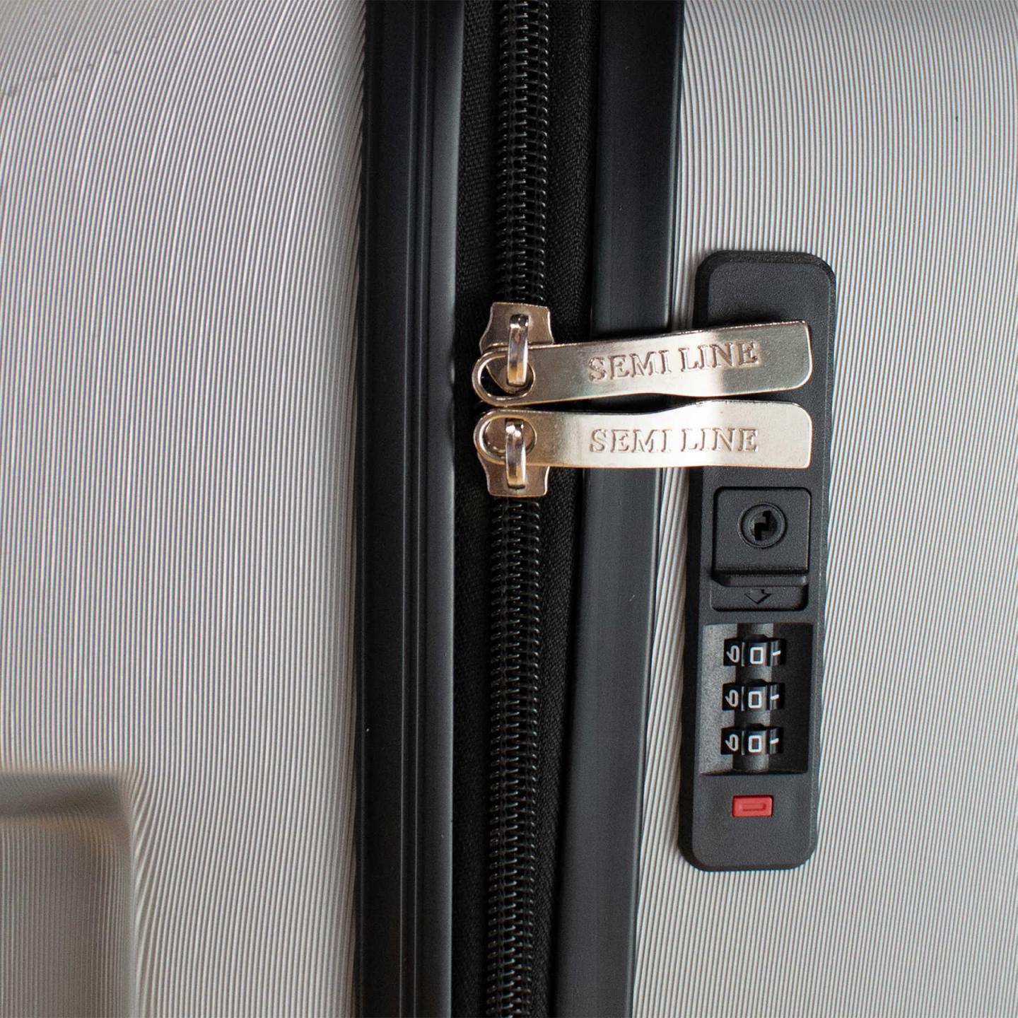 Валіза Semi Line T5797-1 оснащена "утопленим" кодовим замком, що не виступає над поверхнею валізи і, є однією з небагатьох компактних валіз, що має і верхню і бічну ручки з м'якою гелевою підкладкою. Внутрішній простір розділений тектильною перегородкою на блискавці на дві частини, а для дрібних речей передбачена окрема кишеня. Телескопічна ручка має збільшений діаметр направдяючих. Поверхня корпусу має мікрорель'єф завдяки чому подряпини на валізи в процесі експлуатації будуть майже не помітні.
