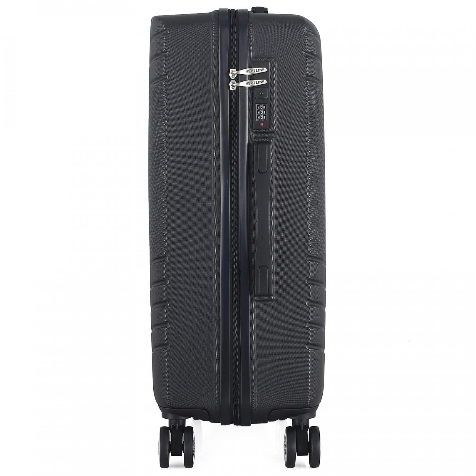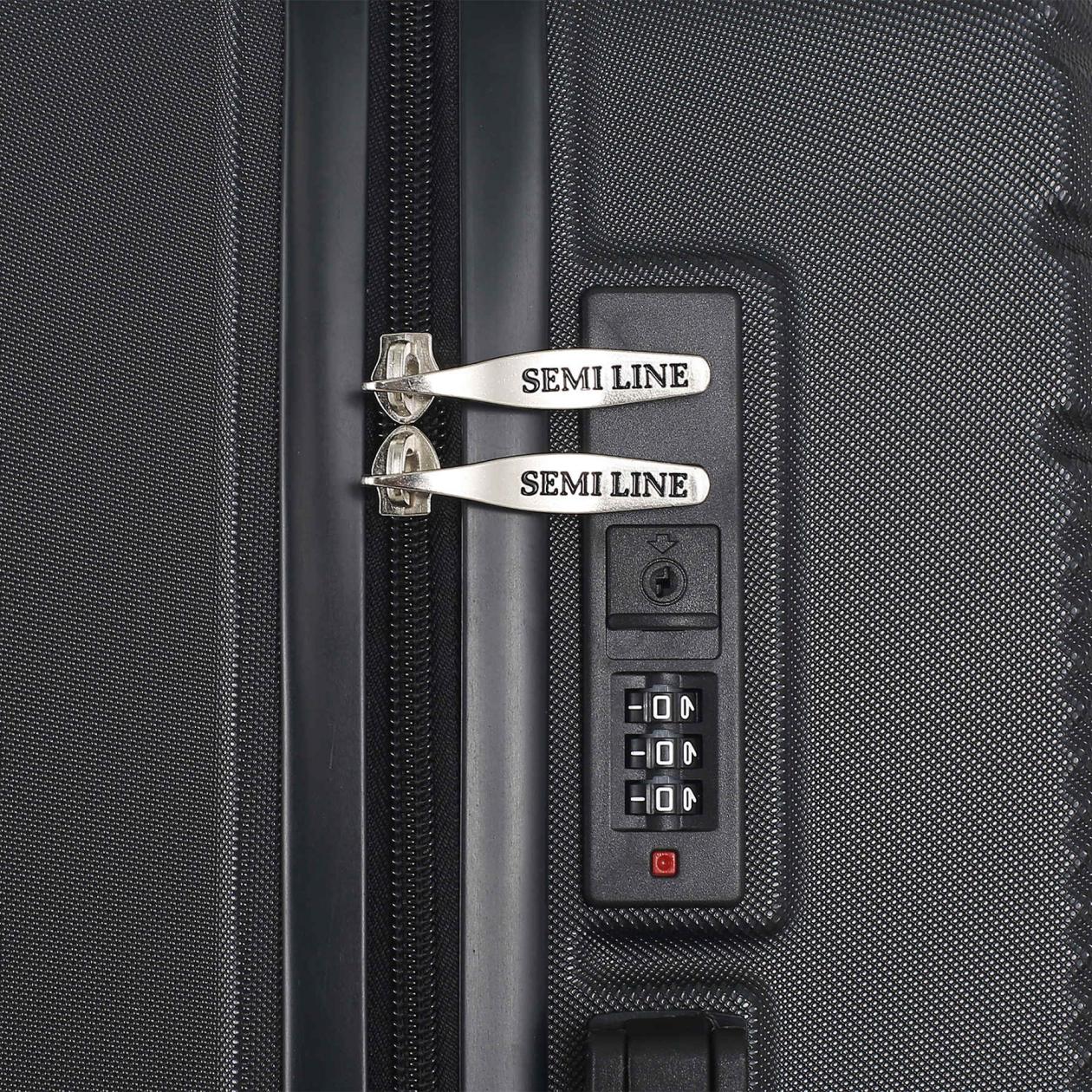 Валіза Semi Line T5789 має рельєфні лінії, що перетинають корпус з більш дрібним рифленим профілем під різними кутами. Завдяки цьому будь-які поверхневі пошкодження корпусу під час використання валізи будуть непомітними. Вона оснащена легкою алюмінієвою телескопічною ручкою, що фіксується в двох положеннях, а ручка для перенесення валізи має м'яку гелеву підкладку. "Утоплений" кодовий замок покликаний захистити вміст вашої валізи, а також не виступає над корпусом, отже його неможливо випадково пошкодити при транспортуванні валізи.