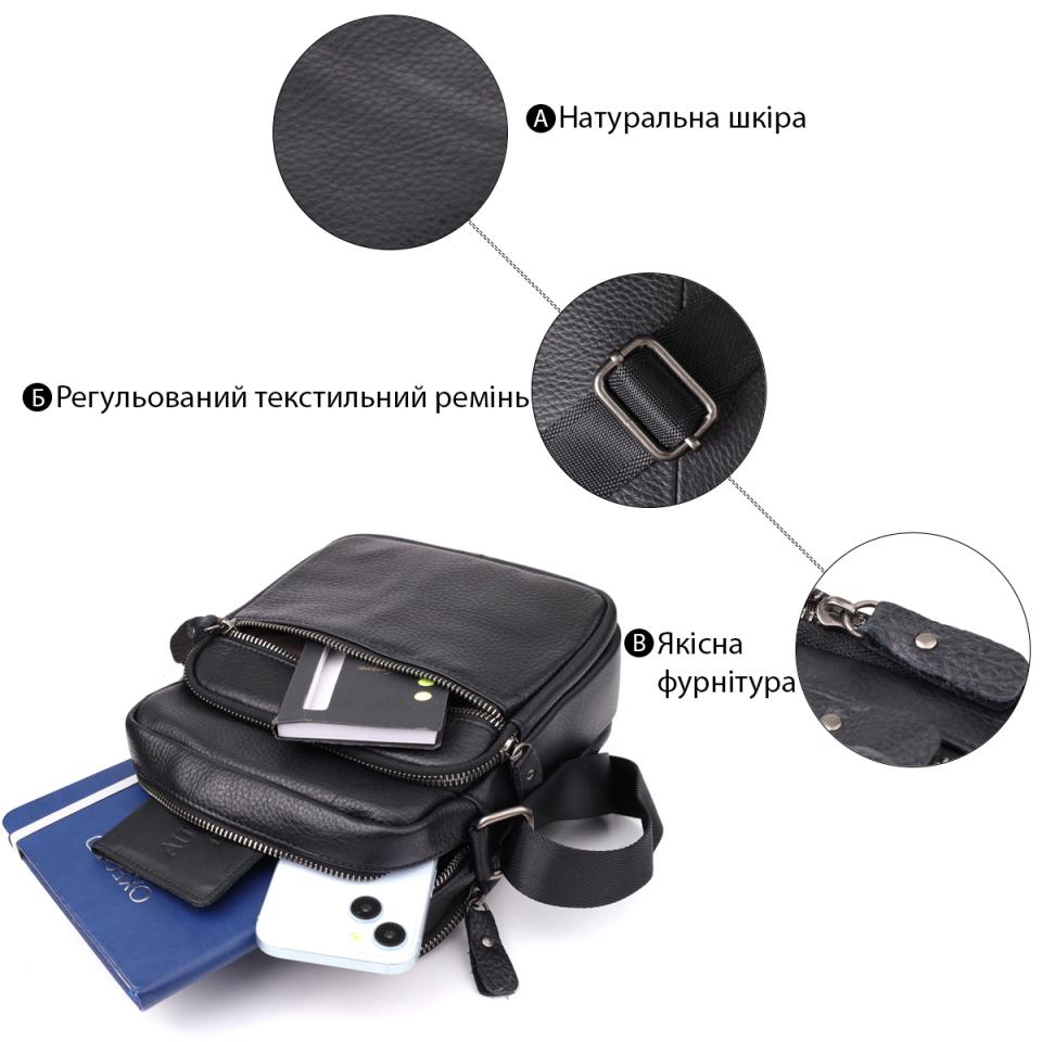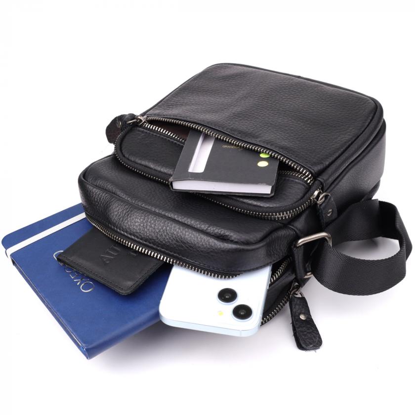Опис: Вместительная мужская сумка на плечо из натуральной кожи Vintage 23022 Черный