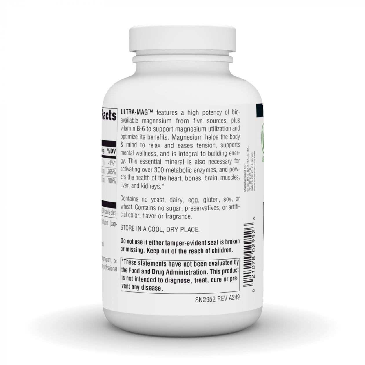 Source Naturals Ultra-Mag – это высококачественная добавка, содержащая специально разработанный комплекс магния. Этот продукт содержит разные формы магния, что помогает обеспечить организм этим важным микроэлементом. Магний известен своим положительным влиянием на поддержание всеобщего самочувствия. Продукт не содержит искусственных красителей, отдушек или консервантов, что делает его безопасным для ежедневного употребления.