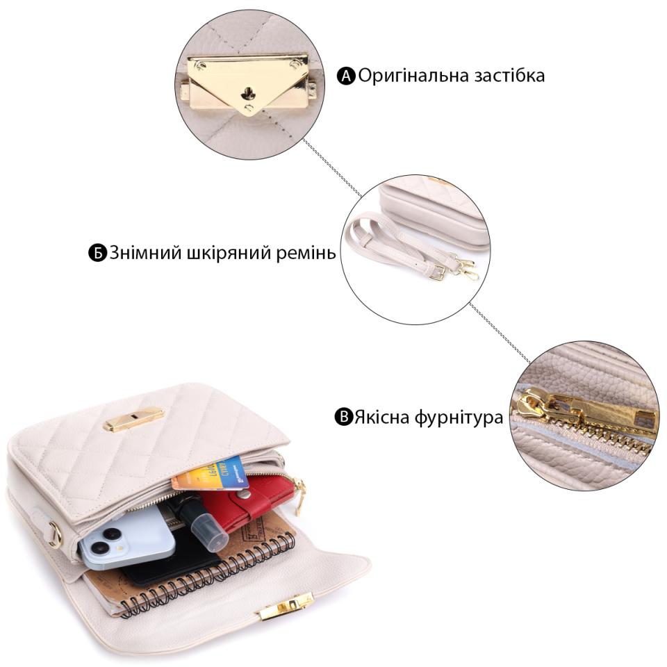 Характеристики: Утонченная женская сумка с оригинальной защелкой из натуральной кожи Vintage 22672 Белая