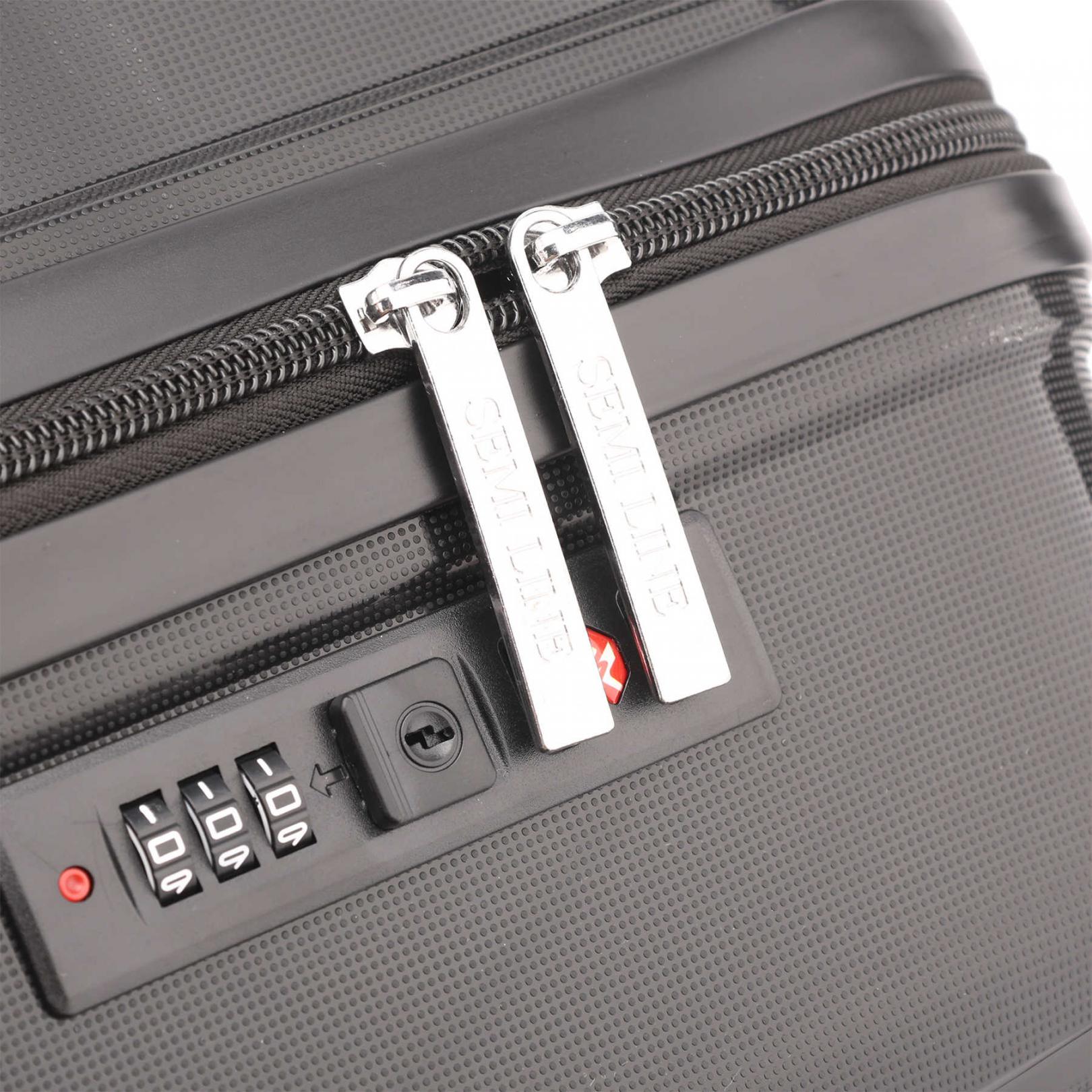 Всі ручки, замок, і навіть колеса валізи виконані в одному кольорі з корпусом, що надає цій моделі більш цілісного вигляду. Валіза Semi Line T5826-1 задовольняє вимогам до максимального розміру багажу, що провозиться в якості ручної поклажі в літаках більшості авіакомпаній світу.
