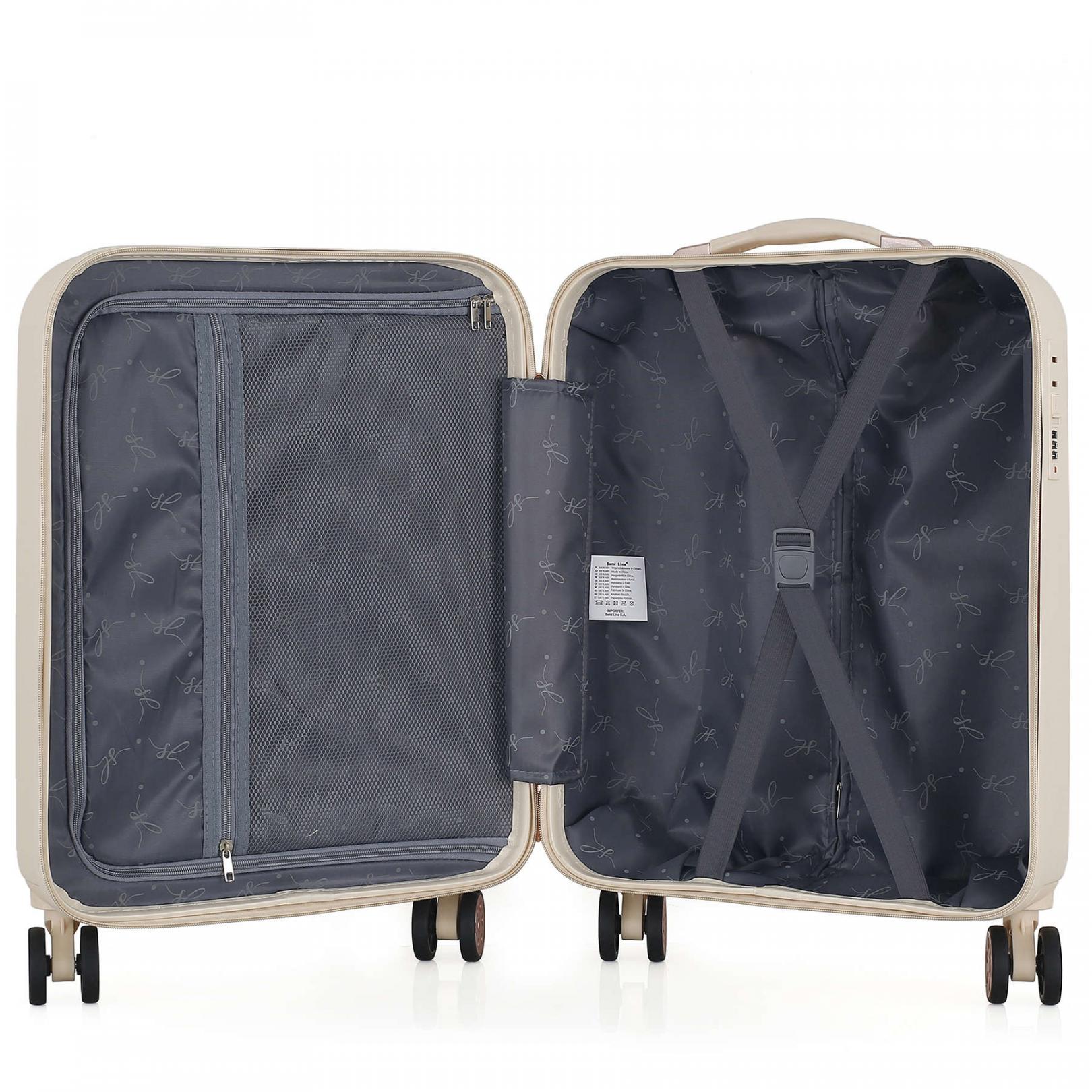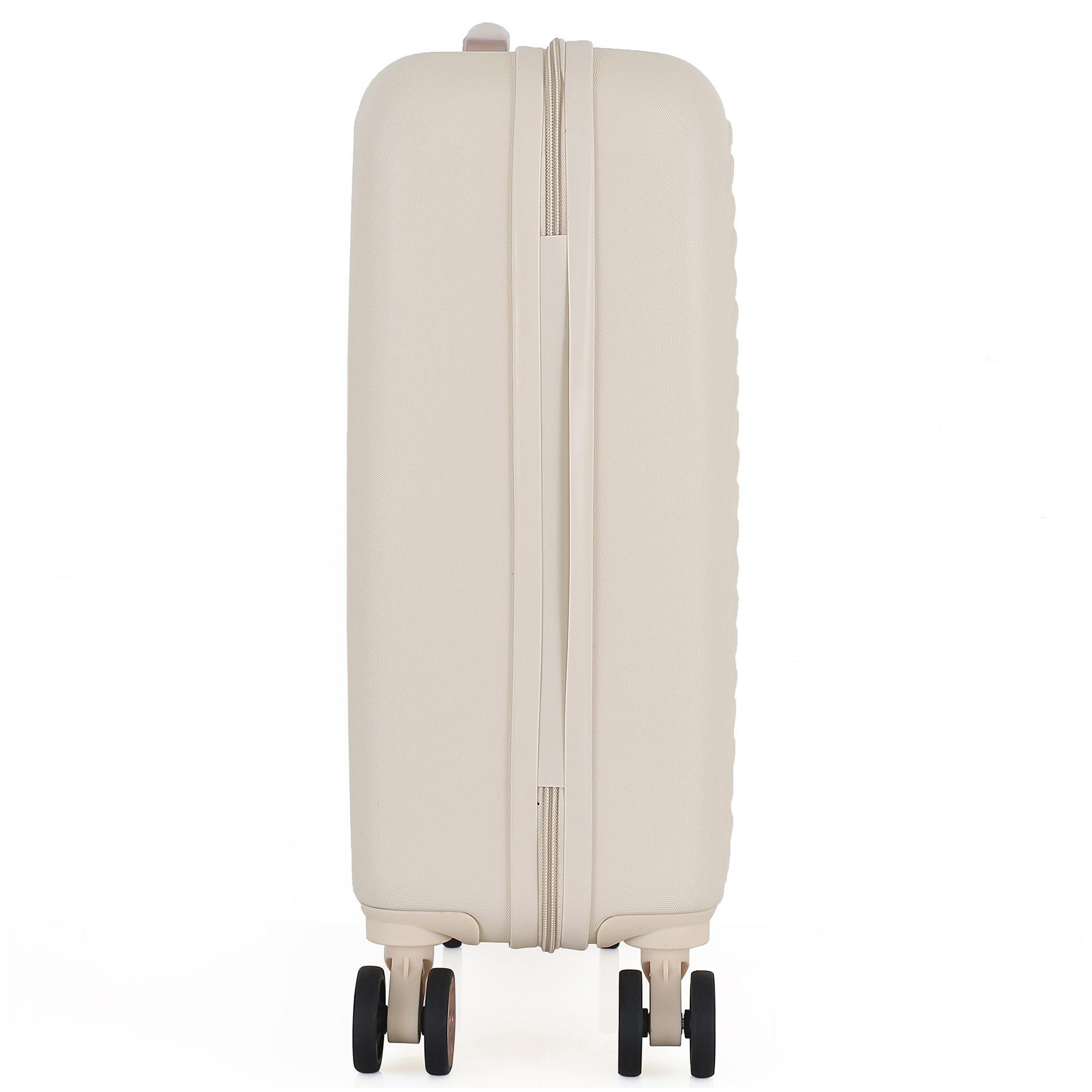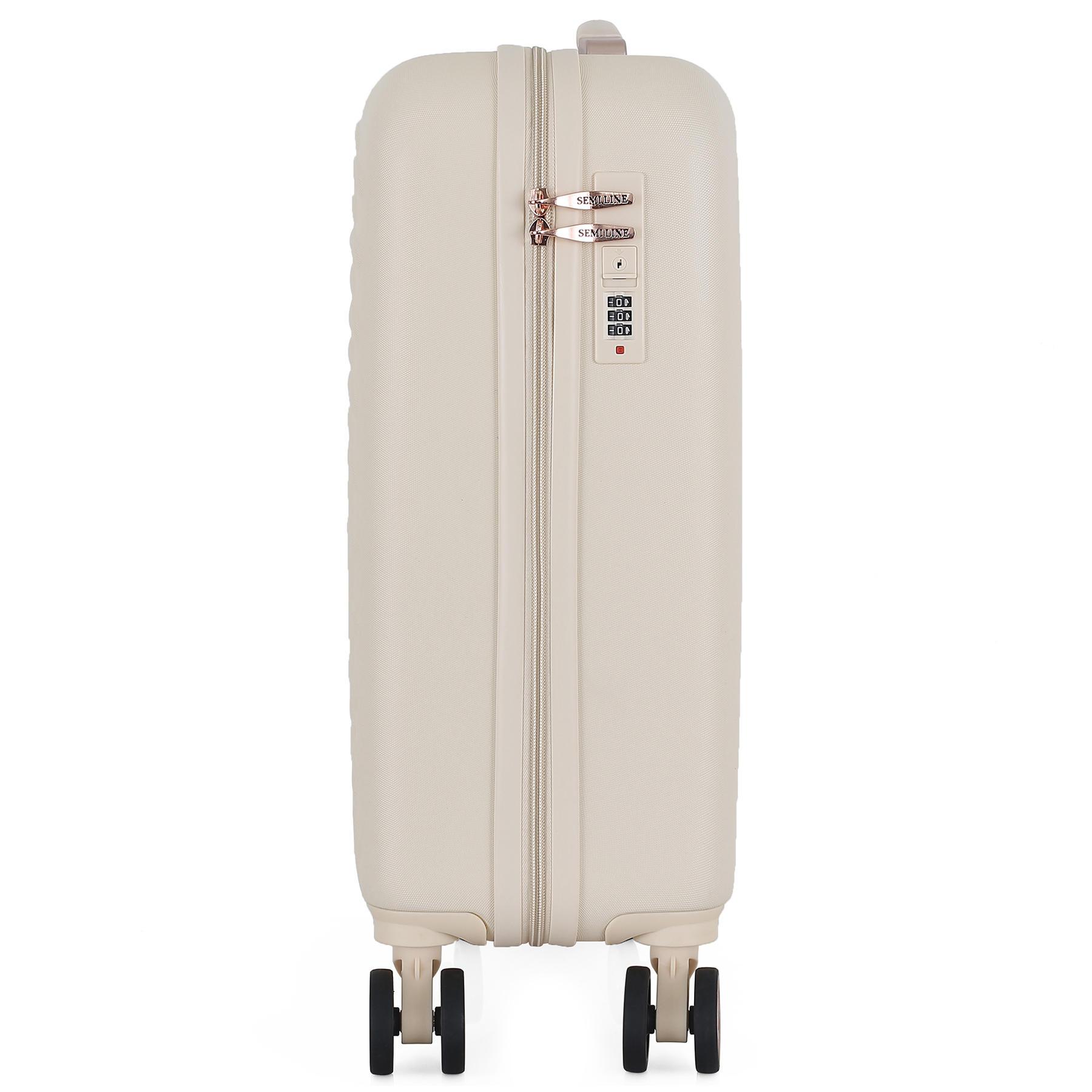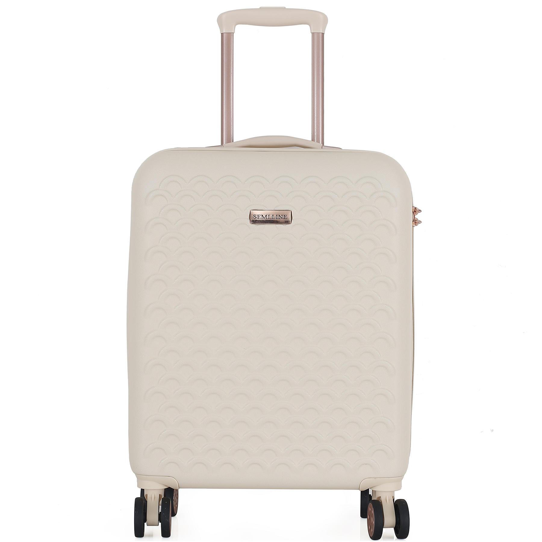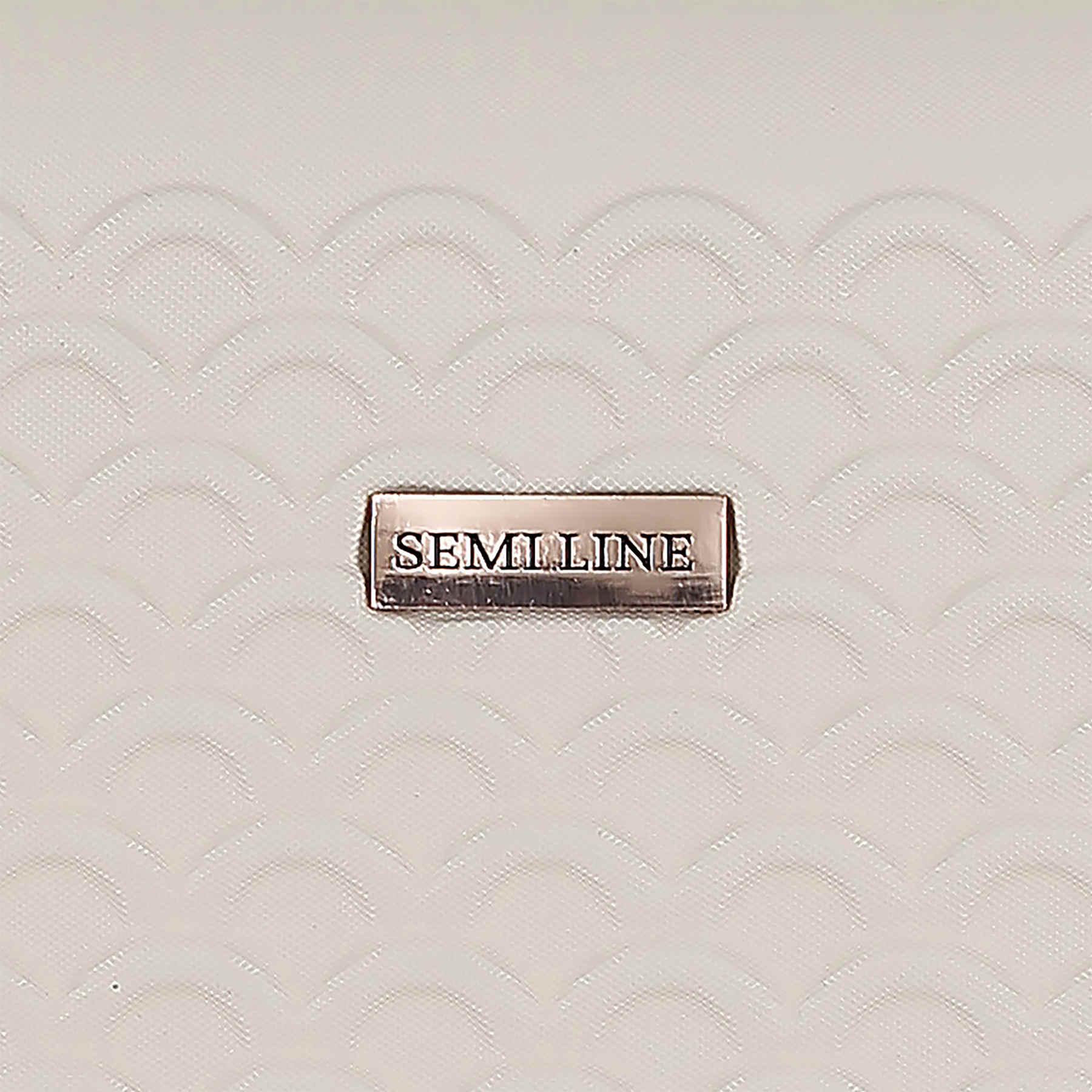 Валіза Semi Line T5791 в сучасному кольорі еркю (колір невідбіленого шовку), з численними металевими і пластиковими вставками під золото, і хвилястим візерунком фасаду виглядає достатньо вишукано. Вона оснащена легкою алюмінієвою телескопічною ручкою, що фіксується в двох положеннях, а ручка для перенесення валізи в руках виконана з приємного на дотик пластику Soft-Touch. "Утоплений" кодовий замок покликаний захистити вміст вашої валізи, а також не виступає над корпусом, отже його неможливо випадково пошкодити при транспортуванні валізи. Semi Line T5791-1 задовольняє вимогам до максимального розміру багажу, що провозиться в якості ручної поклажі в літаках більшості авіакомпаній світу.