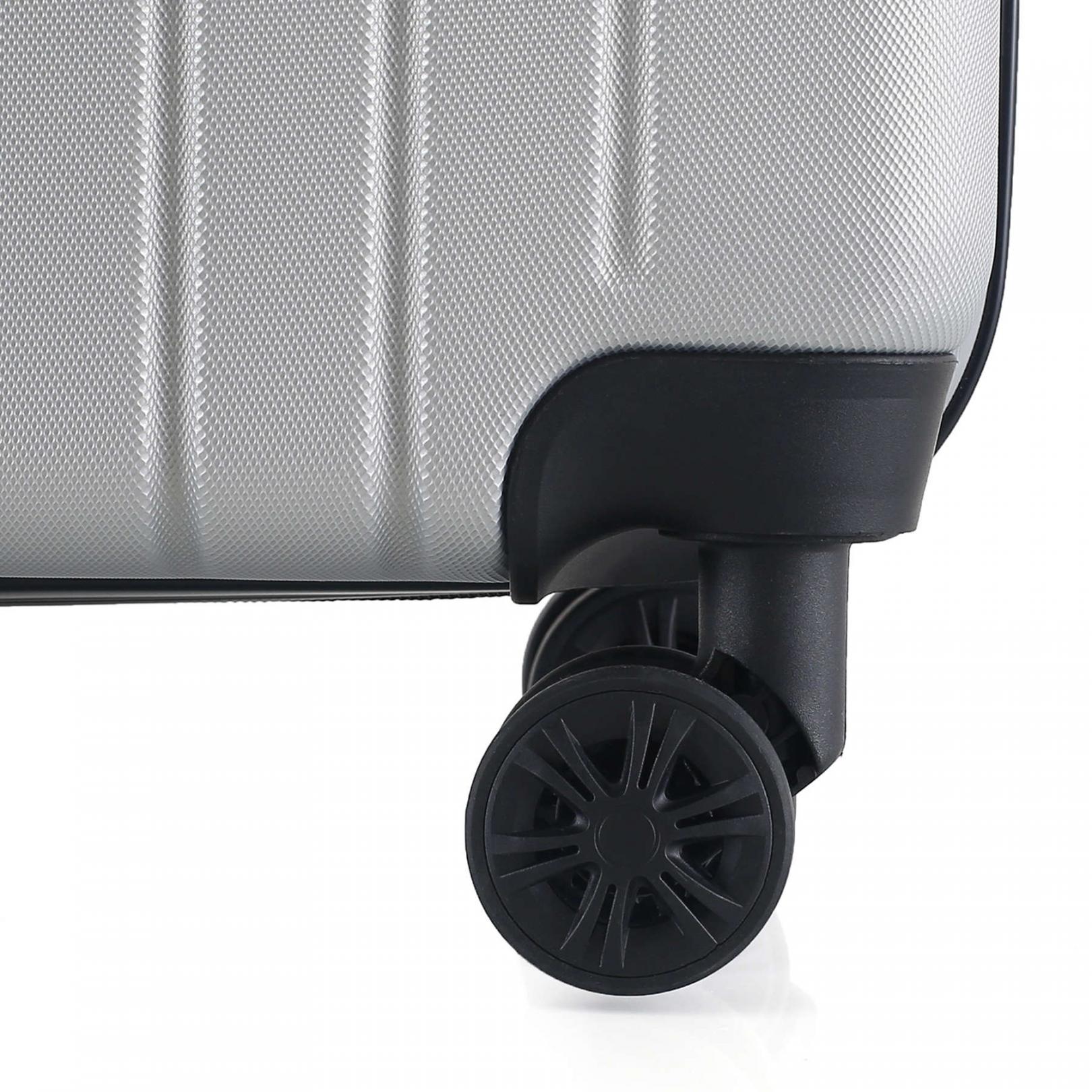 - Повноповоротні колеса - дана модель оснащена чотирма обертовими на 360 ° здвоєними колесами великого діаметру. Здвоєні колеса забезпечують кращий розподіл ваги та стійкість валізи, відмінне зчеплення, маневреність та мають більшу зносостійкість. Колеса кріпляться на 4 гвинти зсередини, що забезпечує високу стійкість при ударному навантаженні з будь-якого боку і дозволяє їх замінити у разі зносу.