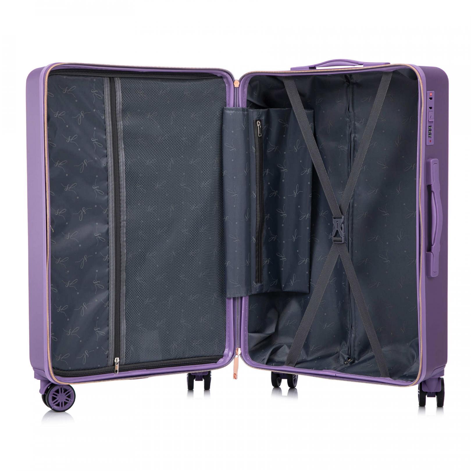 - Валіза має текстильну перегородку на блискавці, яка розділяє внутрішній простір на два основні відділення, та оснащена кишенею на блискавці для дрібних речей.