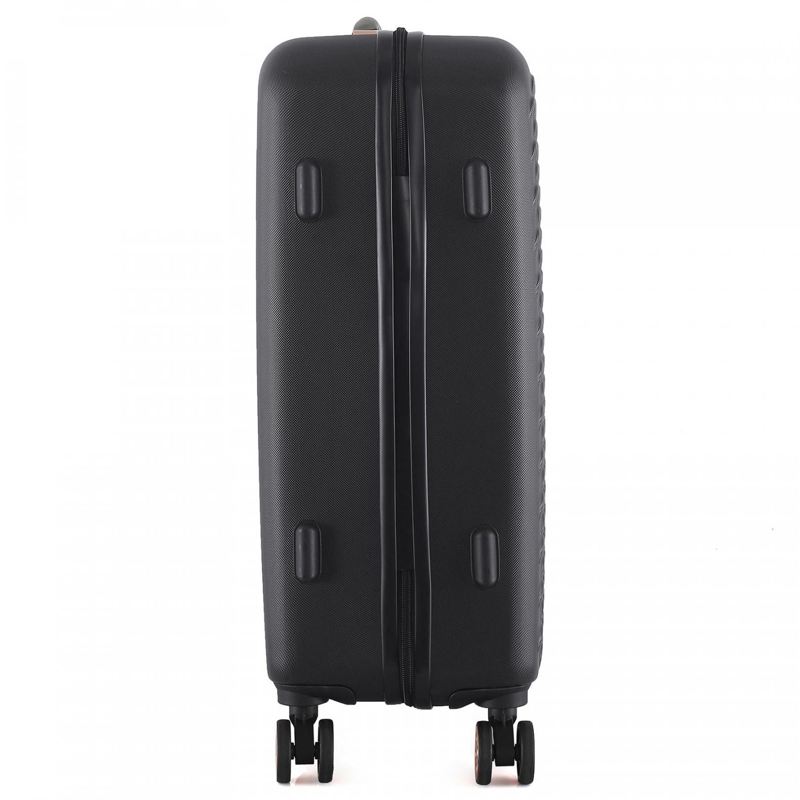 - Повноповоротні колеса - дана модель оснащена чотирма обертовими на 360 ° здвоєними колесами. Здвоєні колеса забезпечують кращий розподіл ваги та стійкість валізи, відмінне зчеплення, маневреність та мають більшу зносостійкість. Колеса кріпляться на 4 гвинти зсередини, що забезпечує високу стійкість при ударному навантаженні з будь-якого боку і дозволяє їх замінити у разі зносу.