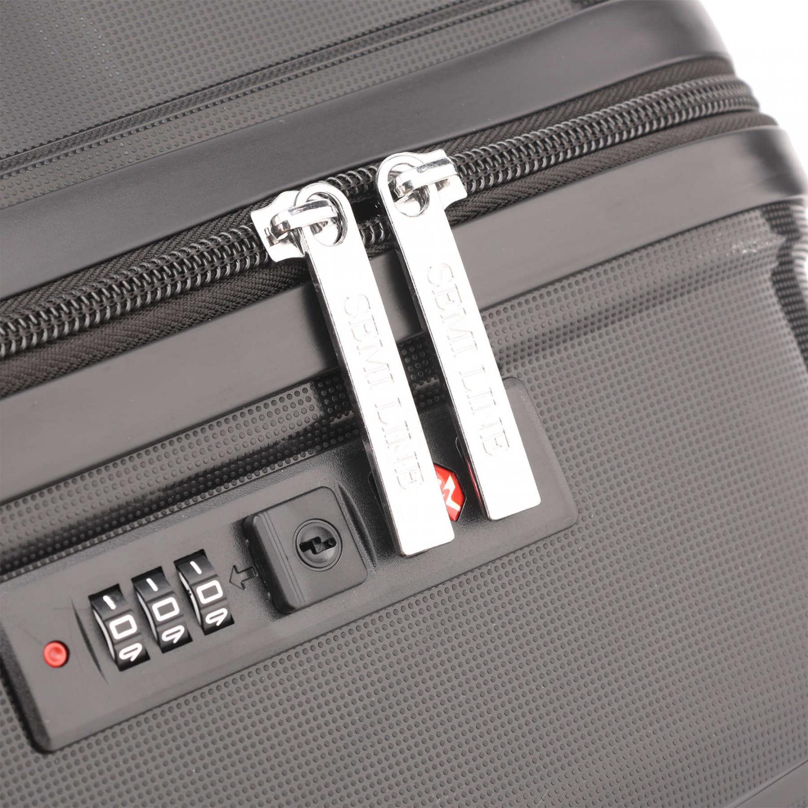 Одні з найлегших і найбільш надійних валіз Semi Line T5826 вироблені з поліпропілену - на сьогоднішній день найбільш оптимального матеріалу з точки зору поєднання міцності і ваги. При випадкових ударах корпус валізи лише прогинається, та приймає початкову форму після зняття навантаження. Валіза оснащена легкою алюмінієвою телескопічною ручкою. "Утоплений" кодовый замок не виступає за площину корпусу, отже його практично неможливо пошкодити, а він в свою чергу покликаний захистити вміст вашої валізи. Всі ручки, замок, і навіть колеса валізи виконані в одному кольорі з корпусом, що надає цій моделі більш цілісного вигляду.