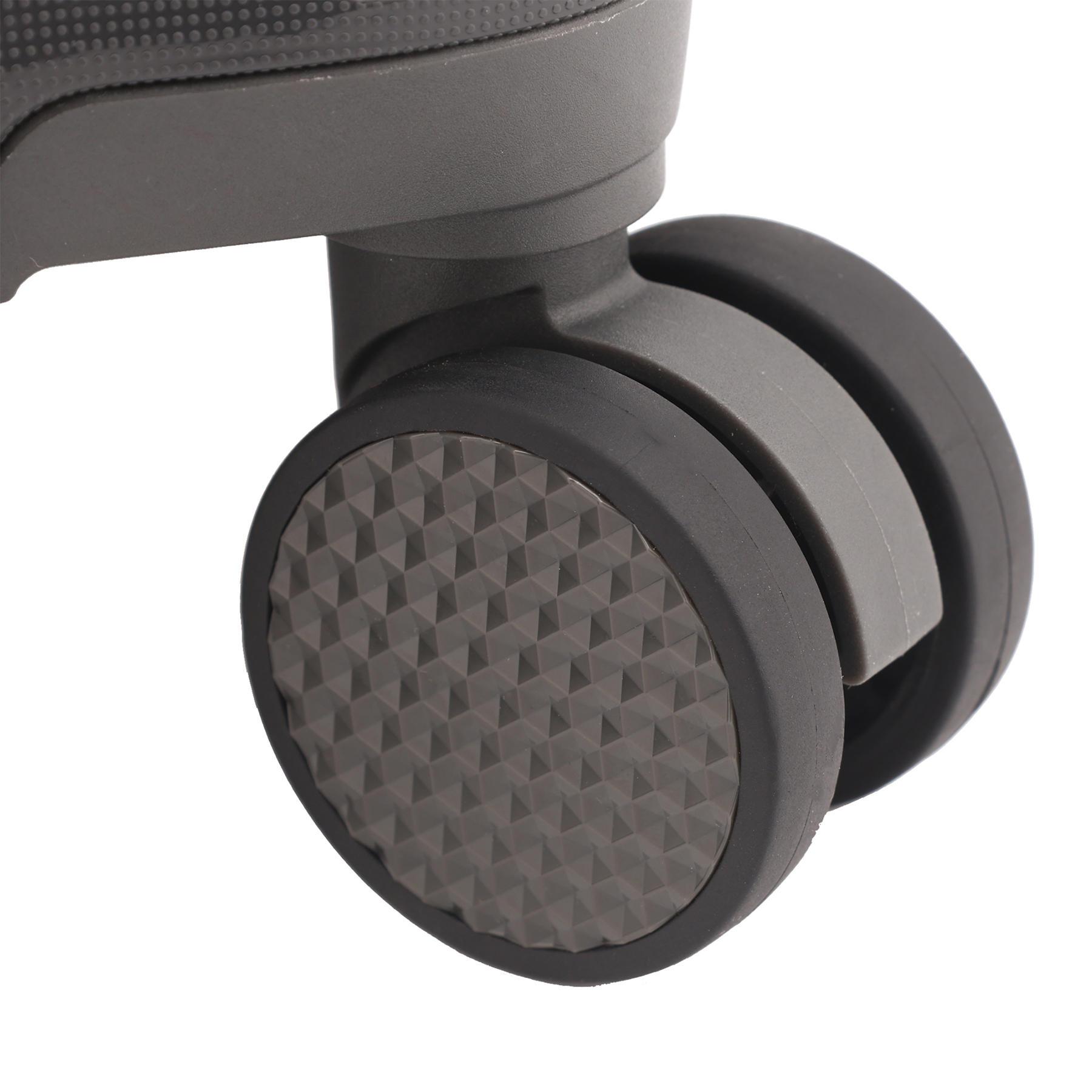 - Подвійні колеса - дана модель оснащена чотирма обертовими на 360 ° здвоєними колесами. Здвоєні колеса забезпечують кращий розподіл ваги та стійкість валізи, відмінне зчеплення, маневреність та мають більшу зносостійкість. Колеса кріпляться гвинтами зсередини, що дозволяє їх замінити у разі зносу.
