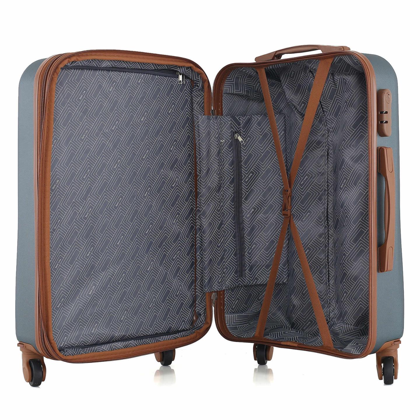 - Валіза має текстильну перегородку на блискавці, яка поділяє внутрішній простір на два основні відділення.