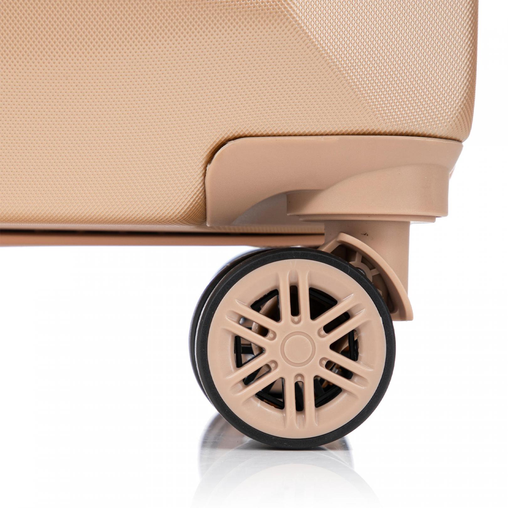 - Повноповоротні колеса - дана модель оснащена чотирма обертовими на 360° здвоєними колесами. Полегшені здвоєні колеса зі спицями забезпечують кращий розподіл ваги та стійкість валізи, відмінне зчеплення, маневреність та мають більшу зносостійкість. Колеса кріпляться на 4 гвинти зсередини, що забезпечує високу стійкість при ударному навантаженні з будь-якого боку і дозволяє їх замінити у разі зносу.