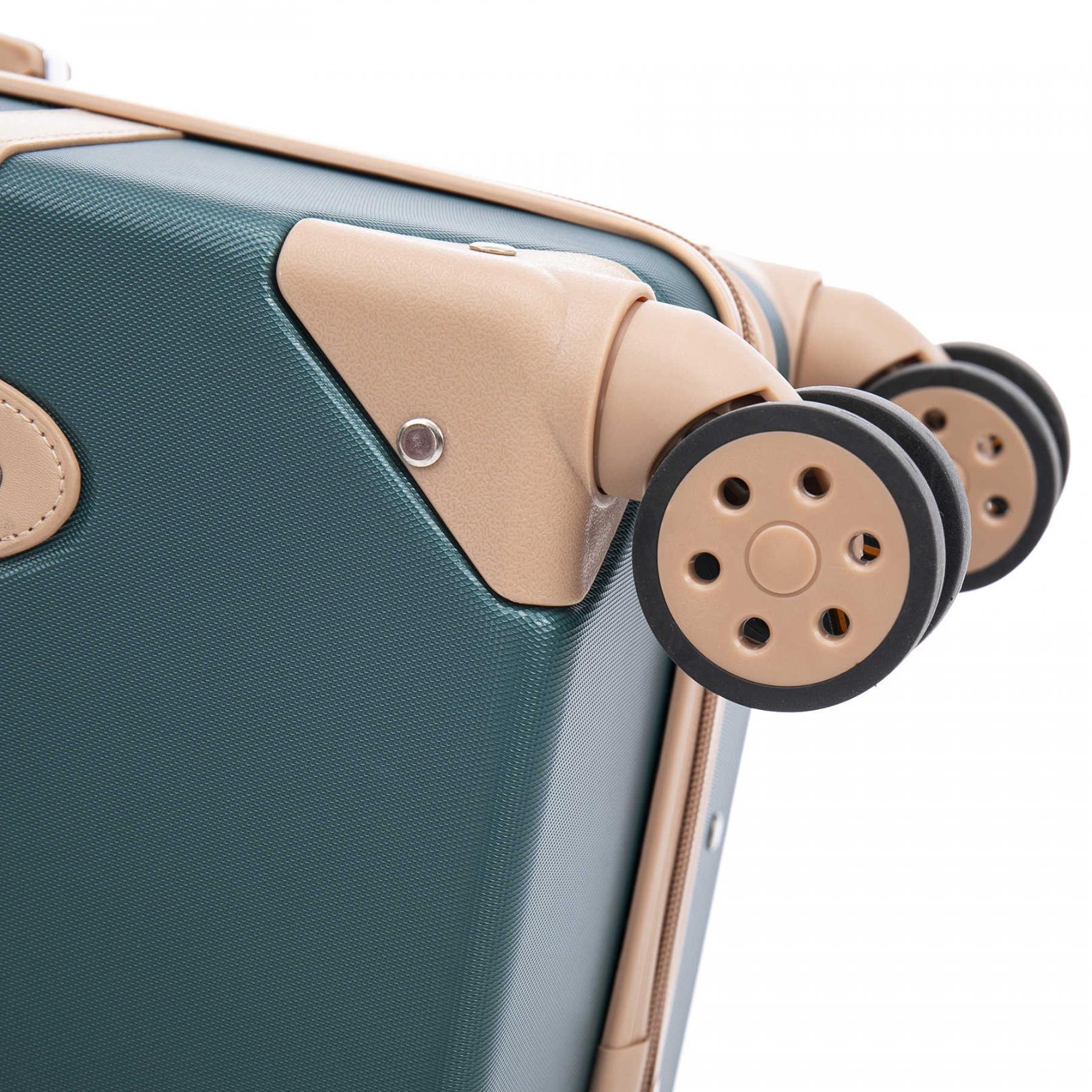 - Повноповоротні колеса - дана модель оснащена чотирма обертовими на 360° здвоєними колесами великого діаметру. Здвоєні колеса забезпечують кращий розподіл ваги та стійкість валізи, відмінне зчеплення, маневреність та мають більшу зносостійкість. Колеса кріпляться гвинтами зсередини, що дозволяє їх замінити у разі зносу.