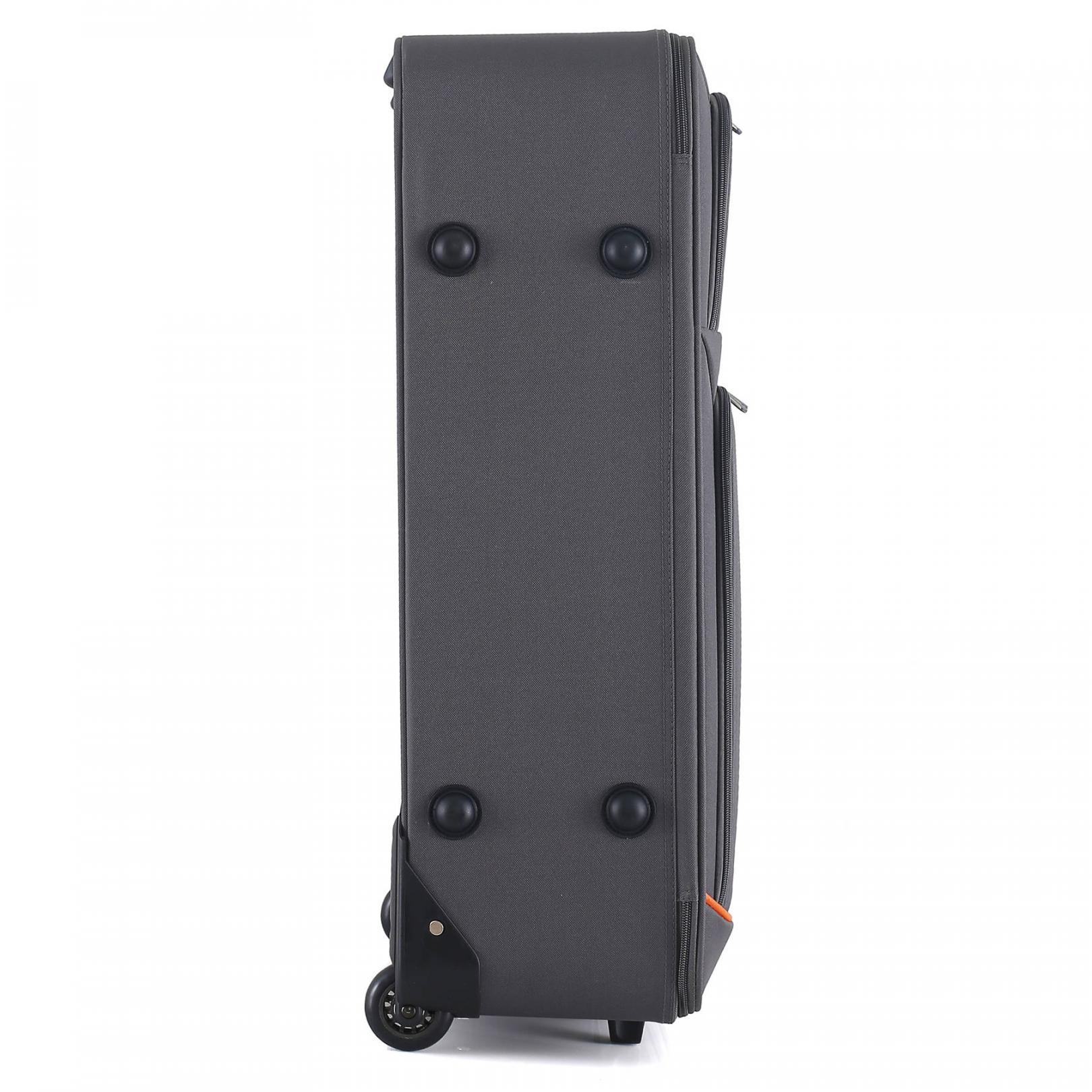 Дві помаранчеві смуги на фасаді роблять вигляд валізи більш виразним, а головне дозволять швидше знайти саме вашу валізу у багажних відділеннях серед багатьох інших схожих валіз. Дві глибокі кишені на фасаді здатні вмістити велику кількість речей першої необхідності. Для розміщення дрібних речей всередині валізи передбачена окрема кишеня на блискавці. Телескопічна ручка фіксується в двох положеннях.