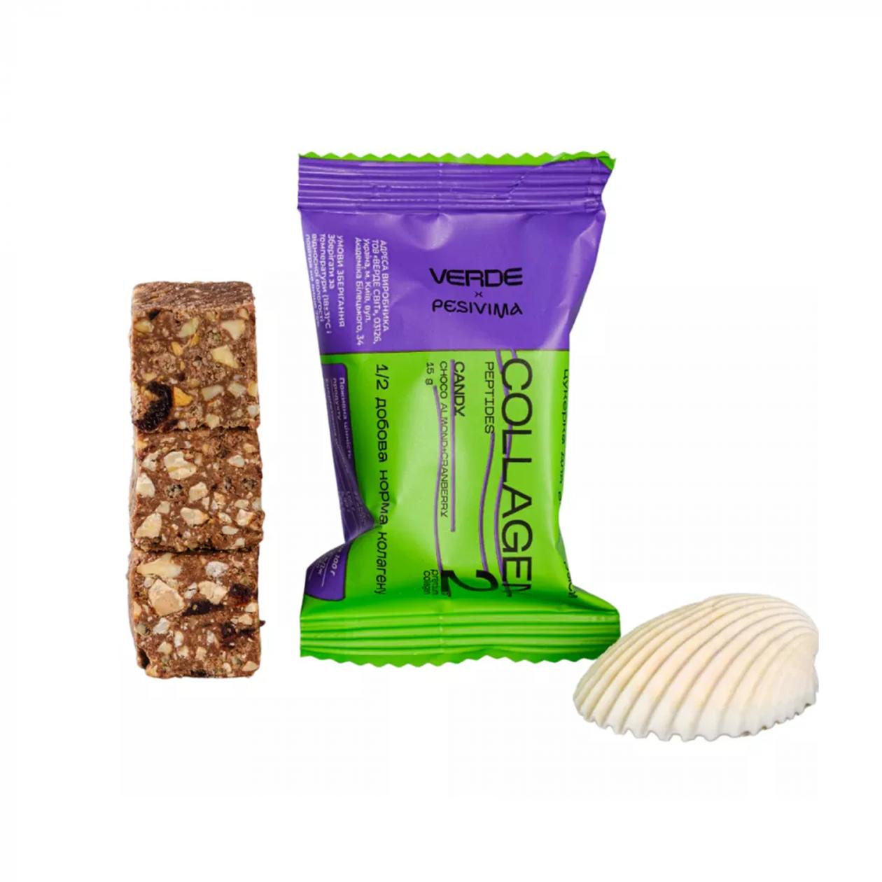 Морской коллаген + белый шоколад + миндаль + клюква – нежный шоколад, хрустящий миндаль и яркая ягодная кислинка. Сладкое наслаждение с пользой для вашей красоты!