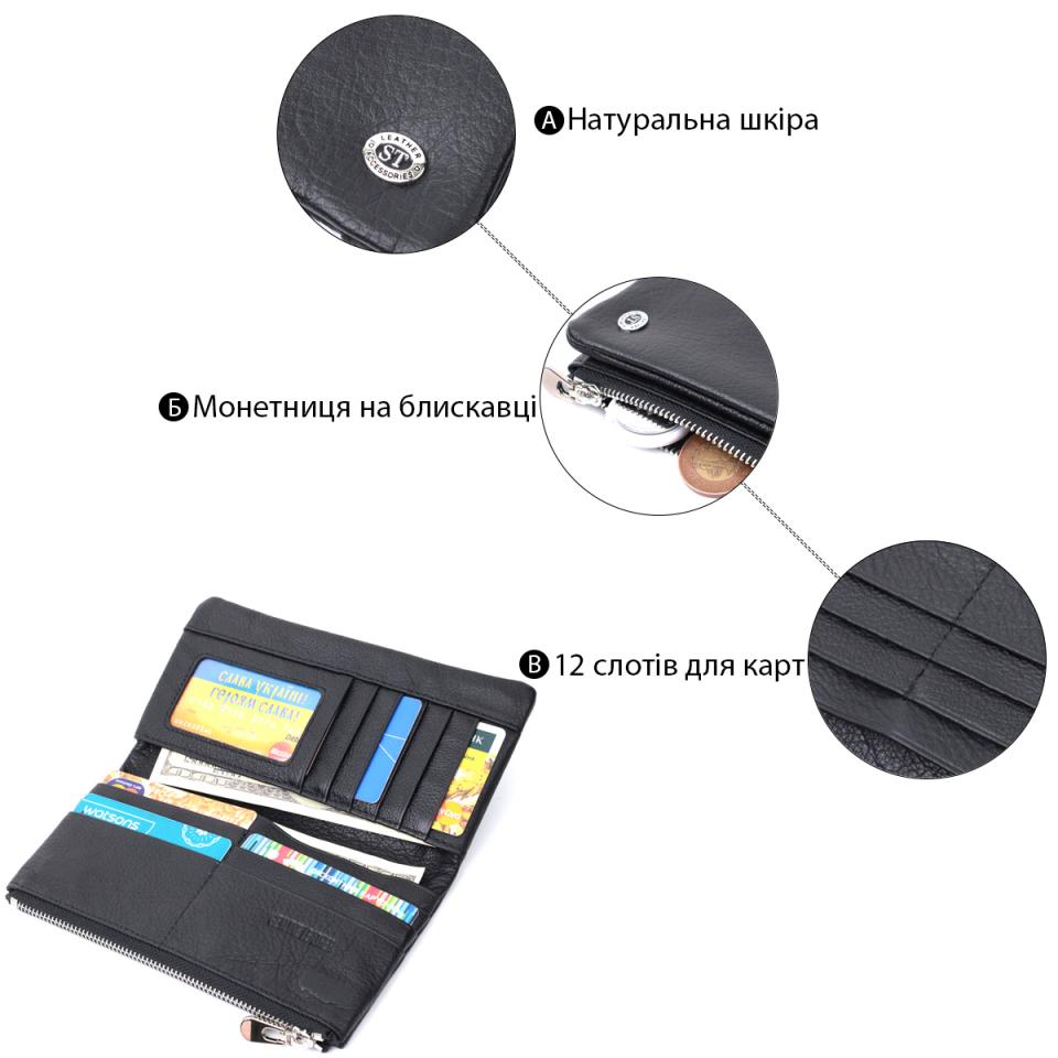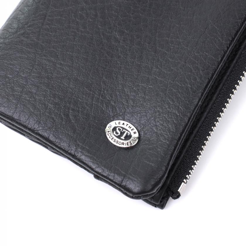Характеристики: Вертикальный бумажник унисекс из мягкой натуральной кожи ST Leather 22743 Черный