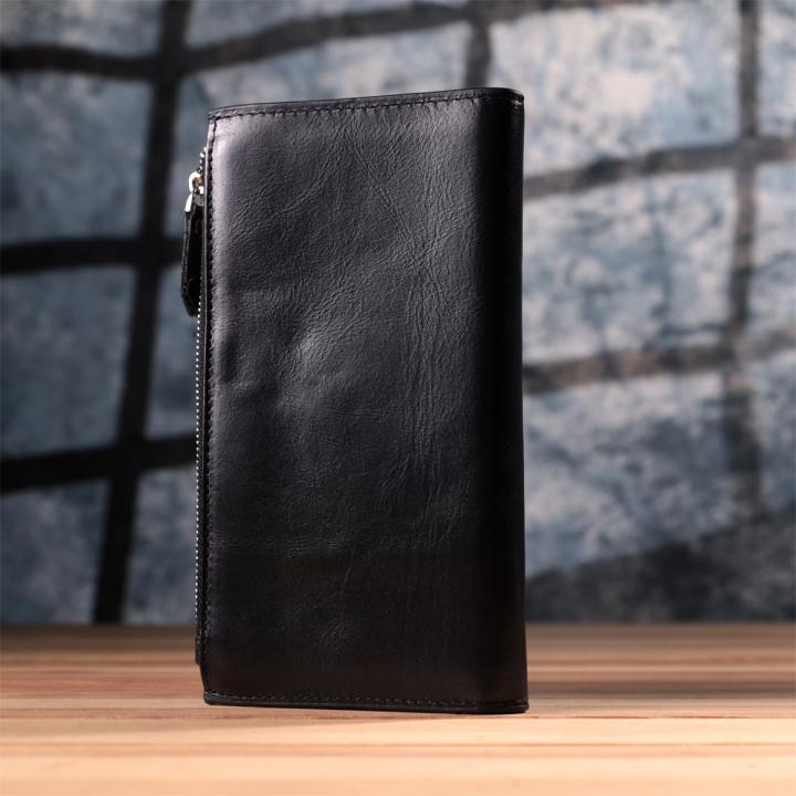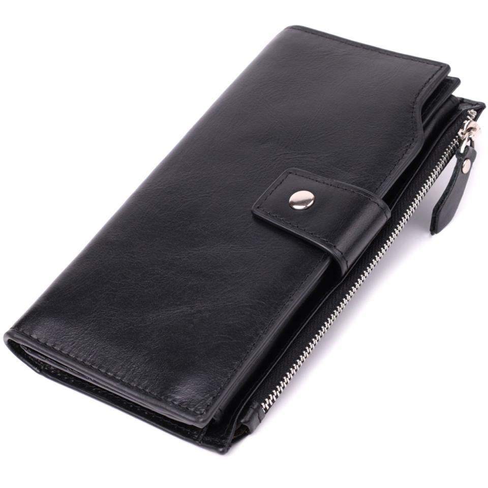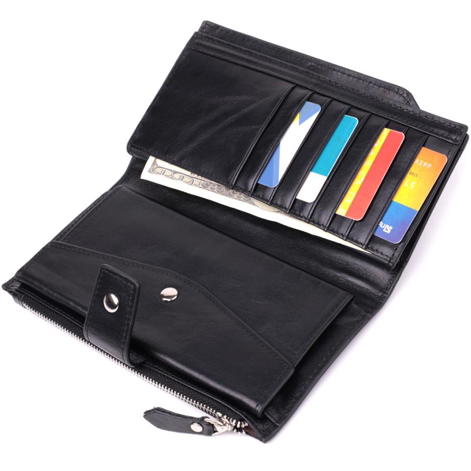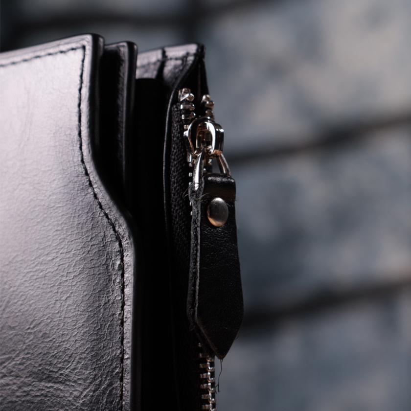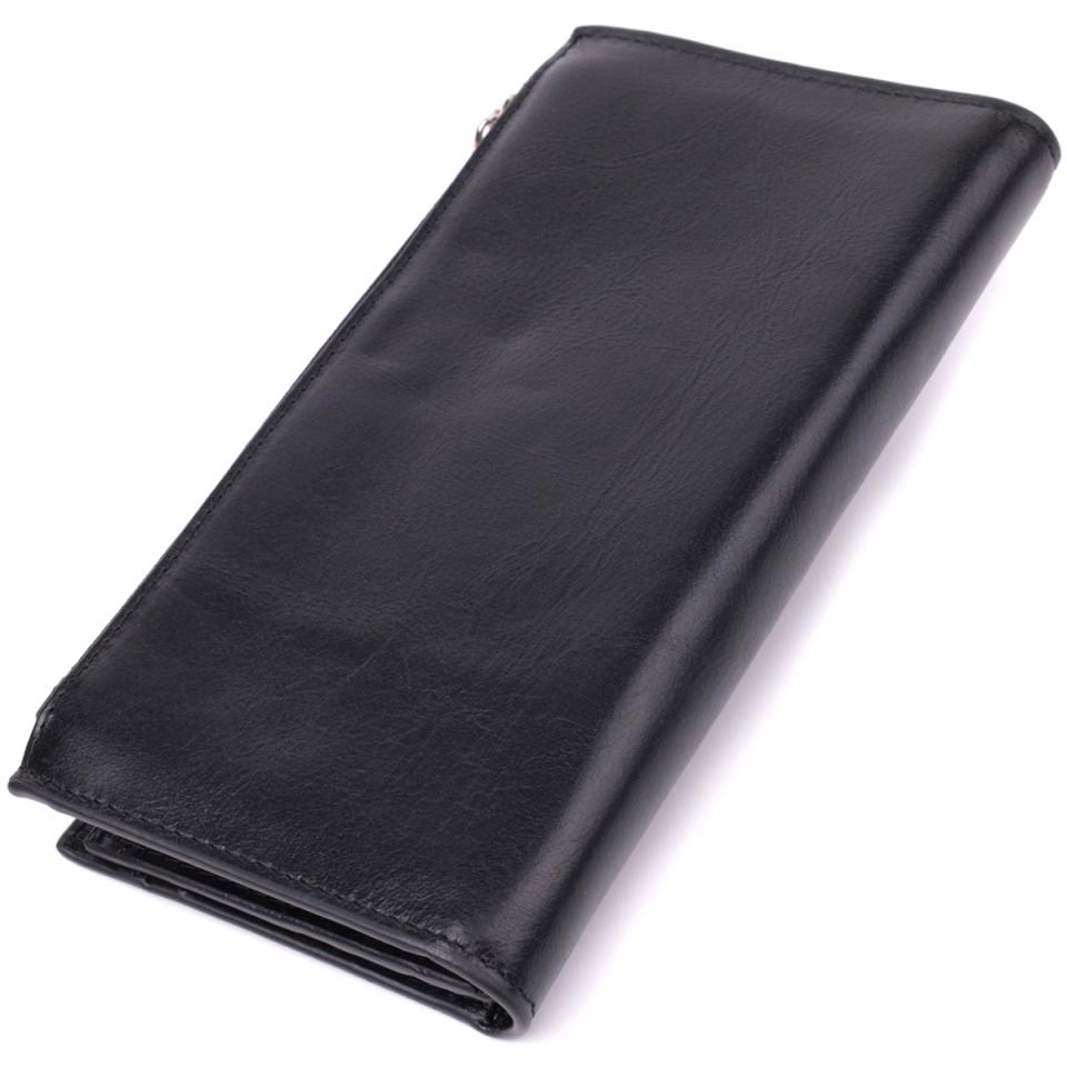 Отзывы: Вертикальный стильный кошелек из гладкой натуральной кожи Vintage 22885 Черный