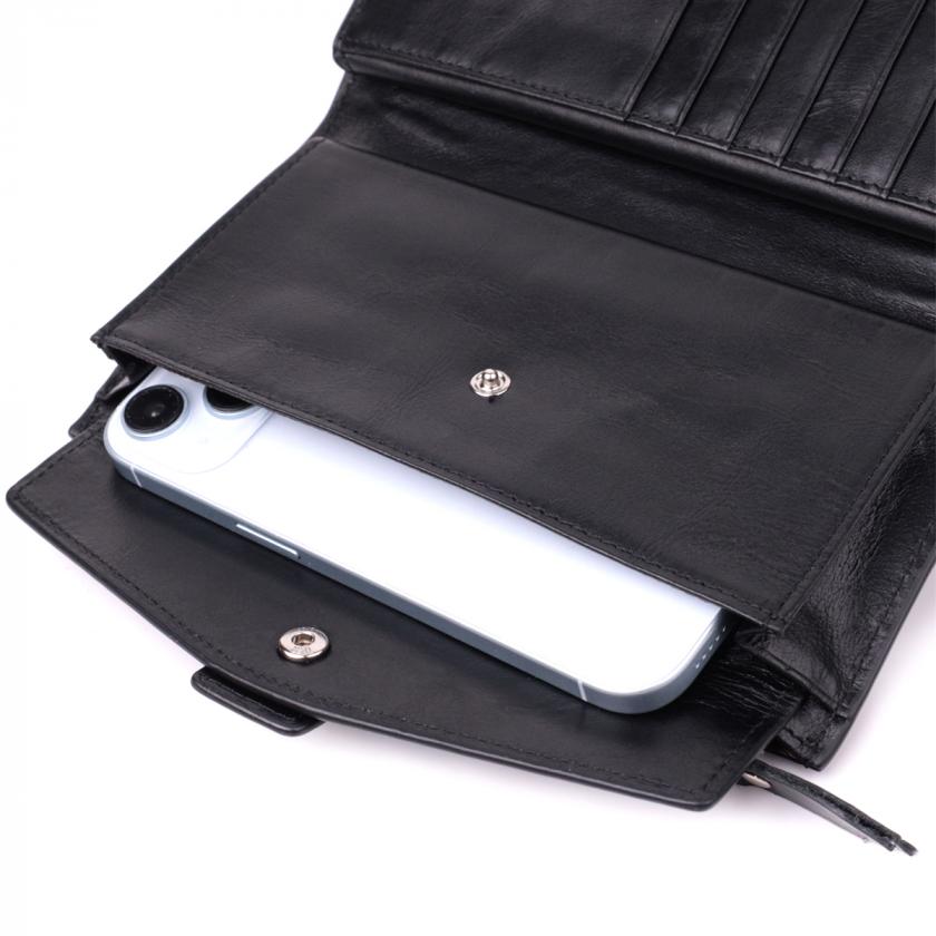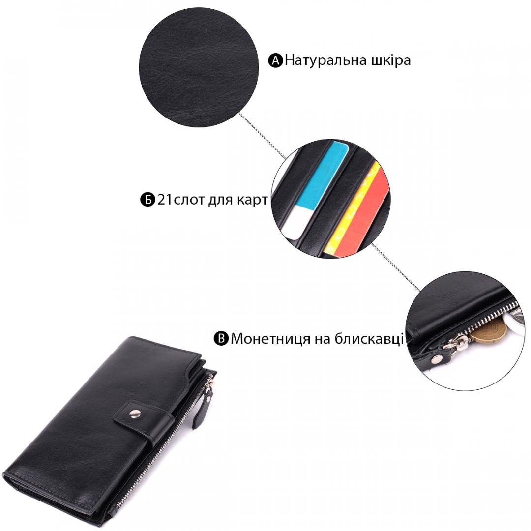 Характеристики: Вертикальный стильный кошелек из гладкой натуральной кожи Vintage 22885 Черный