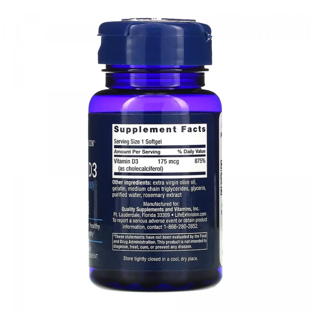 Эта добавка с витамином D3 обеспечивает 175 мкг (7000 МЕ) витамина D3 в виде холекальциферола в одной капсуле. Мы рекомендуем сделать анализ крови на 25-гидроксивитамин D через 3 месяца, чтобы оценить и откорректировать дозу. Оптимальный уровень крови должен составлять 50–80 нг/мл в течение всего года.