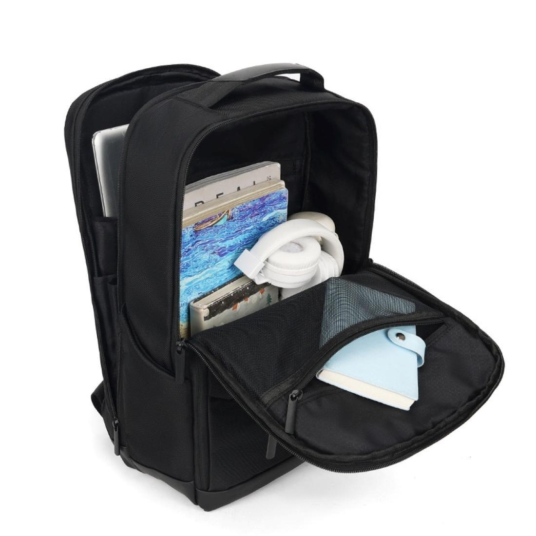 Дополнительное отделение-органайзер, в котором предусмотрены отдельные карманы для планшета, смартфона, павербанка и канцелярии. Также внутри есть дополнительный сетчатый карман на молнии для мелочей.
