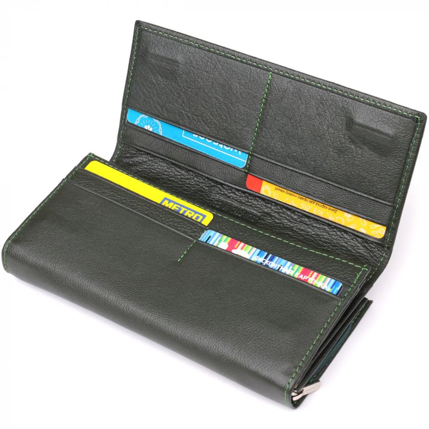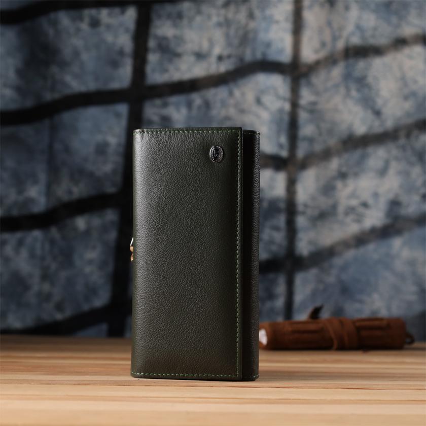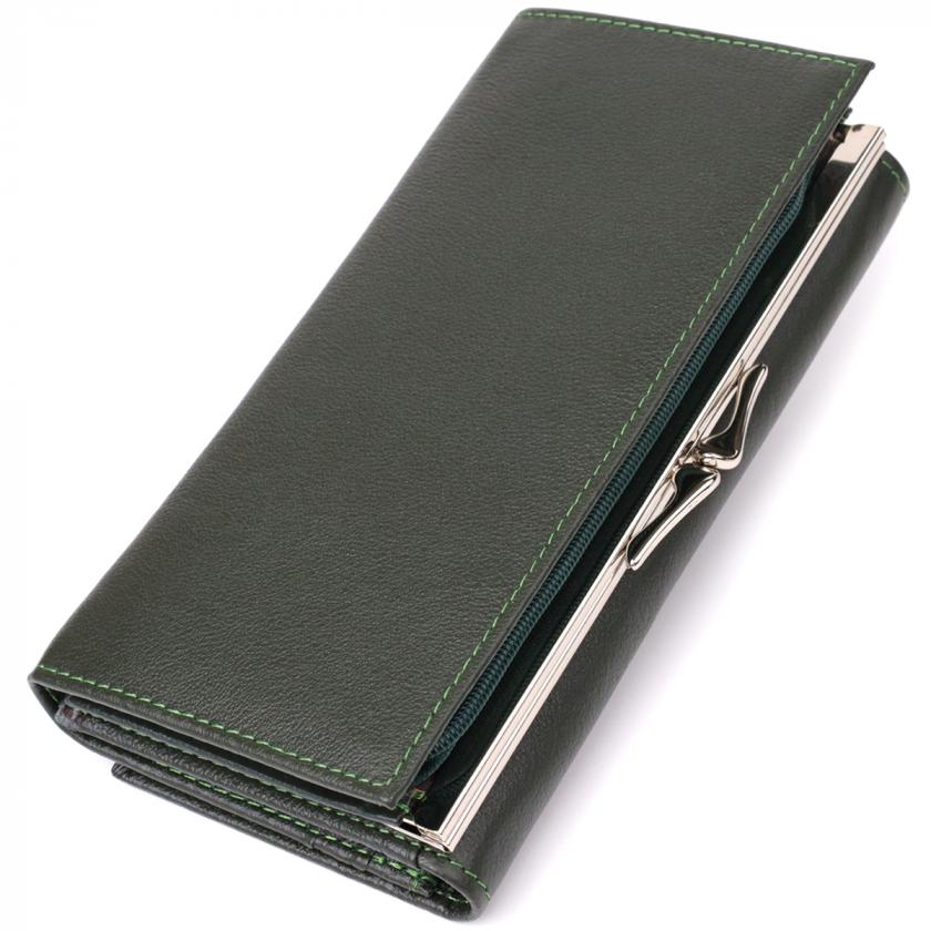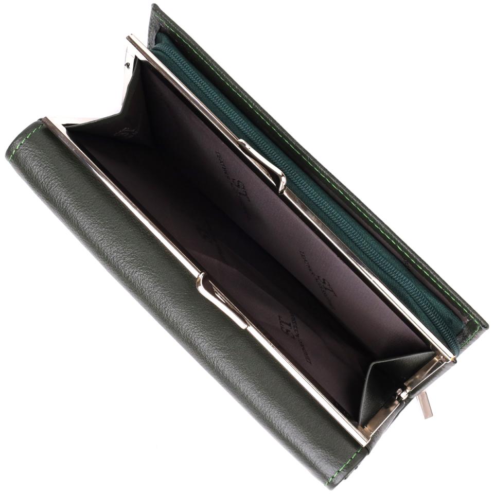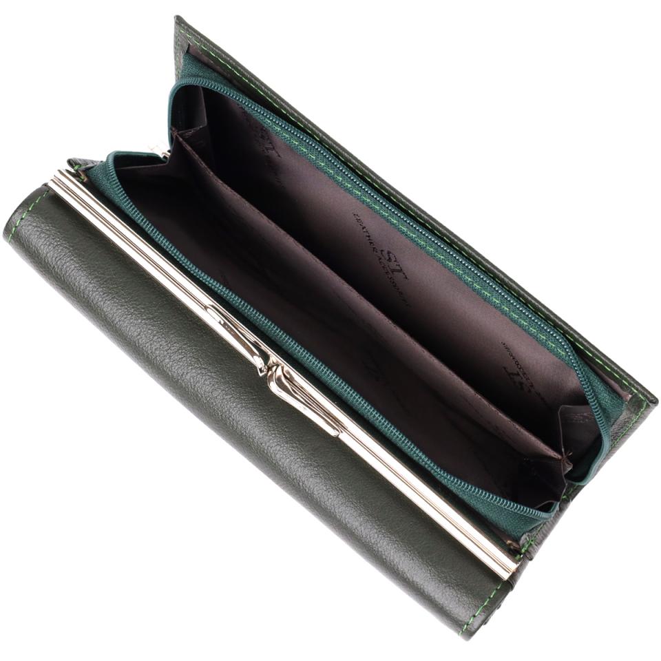 Вместительный женский кошелек на магнитах из натуральной кожи ST Leather 23115 Зеленый
