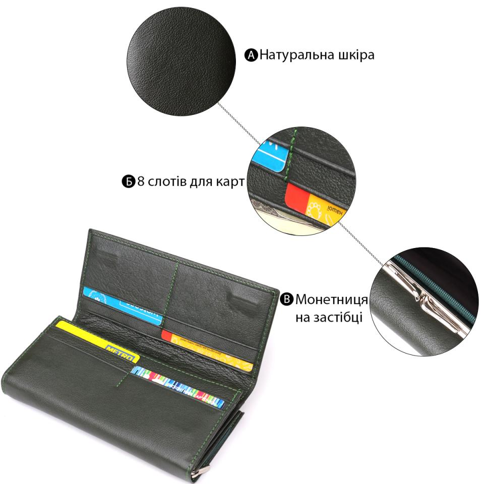 Характеристики: Вместительный женский кошелек на магнитах из натуральной кожи ST Leather 23115 Зеленый