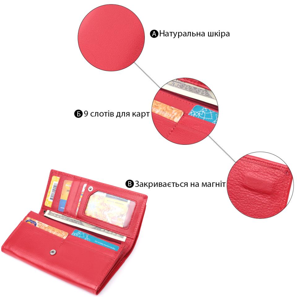 Характеристики: Вместительный женский кошелек с двумя клапанами из натуральной кожи ST Leather 22695 Красный