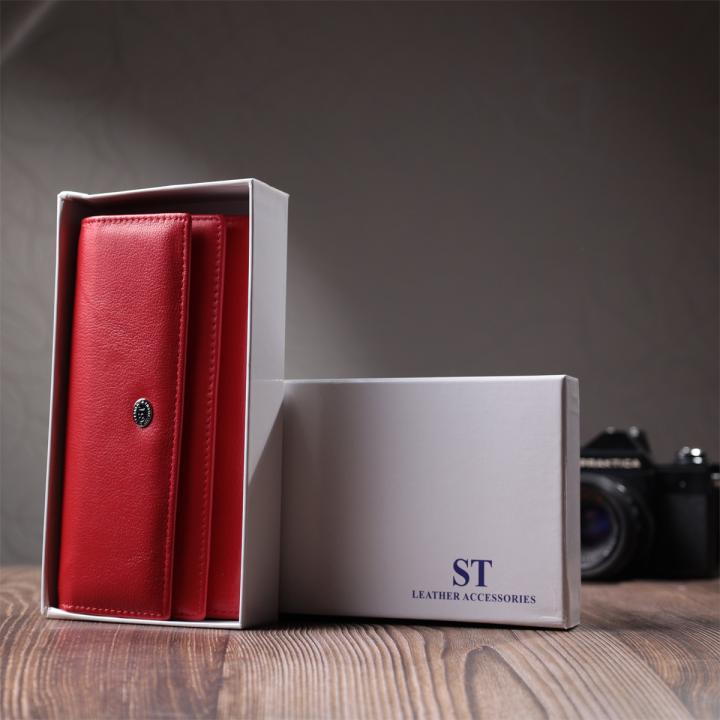 Отзывы: Вместительный женский кошелек с двумя клапанами из натуральной кожи ST Leather 22695 Красный